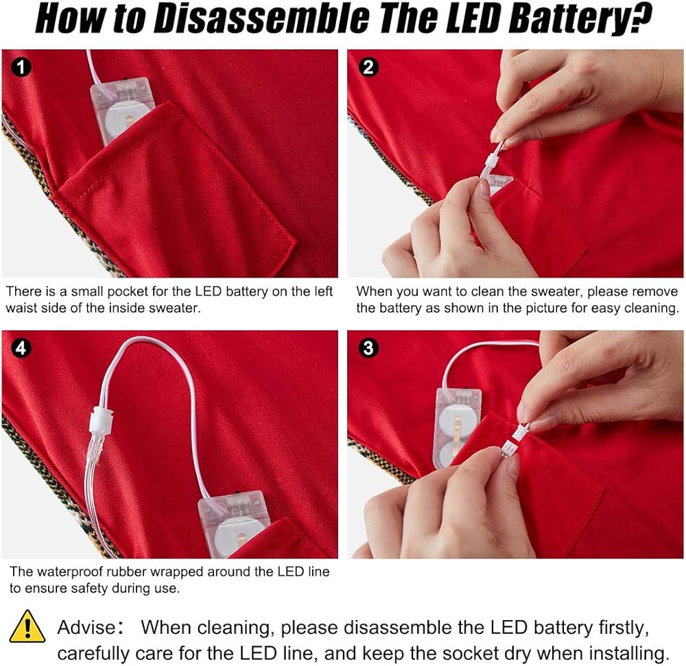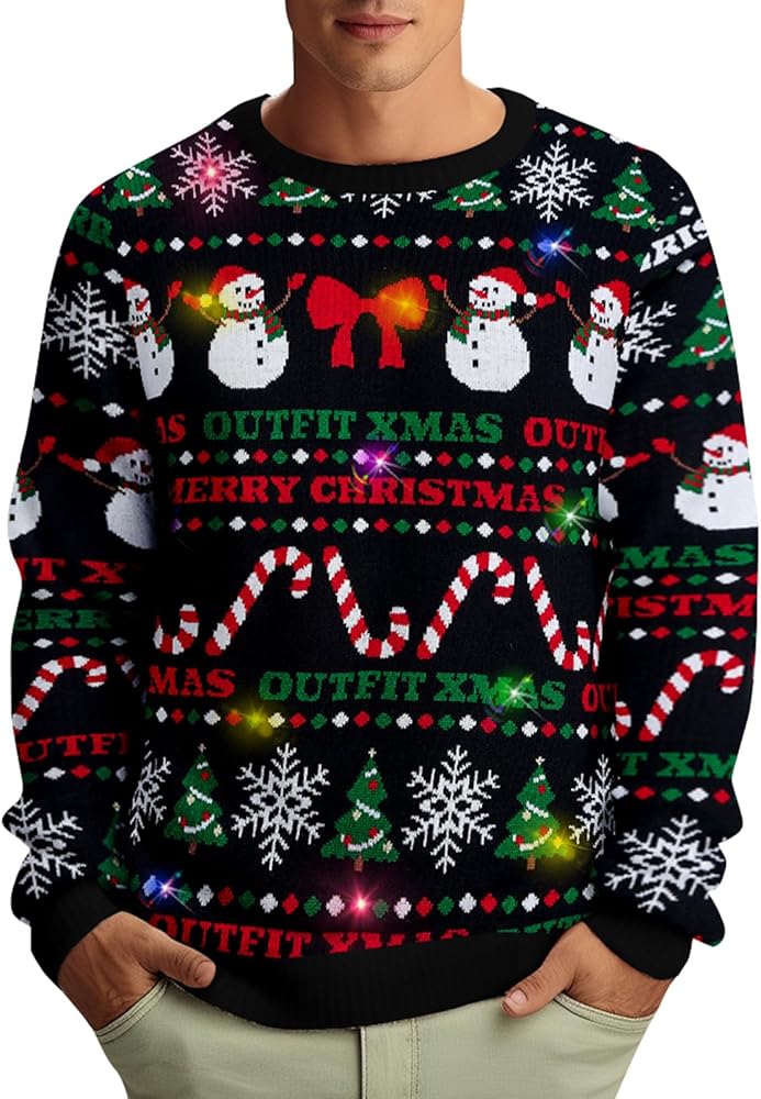 ☃☃المميزات: خط رفيع فائق النعومة لن ينكمش أو يسبب الحكة، زخرفة مضلعة عند الرقبة والأساور والحاشية. أنماط عيد الميلاد المضحكة مع مصابيح LED يتم تفعيلها بالحركة