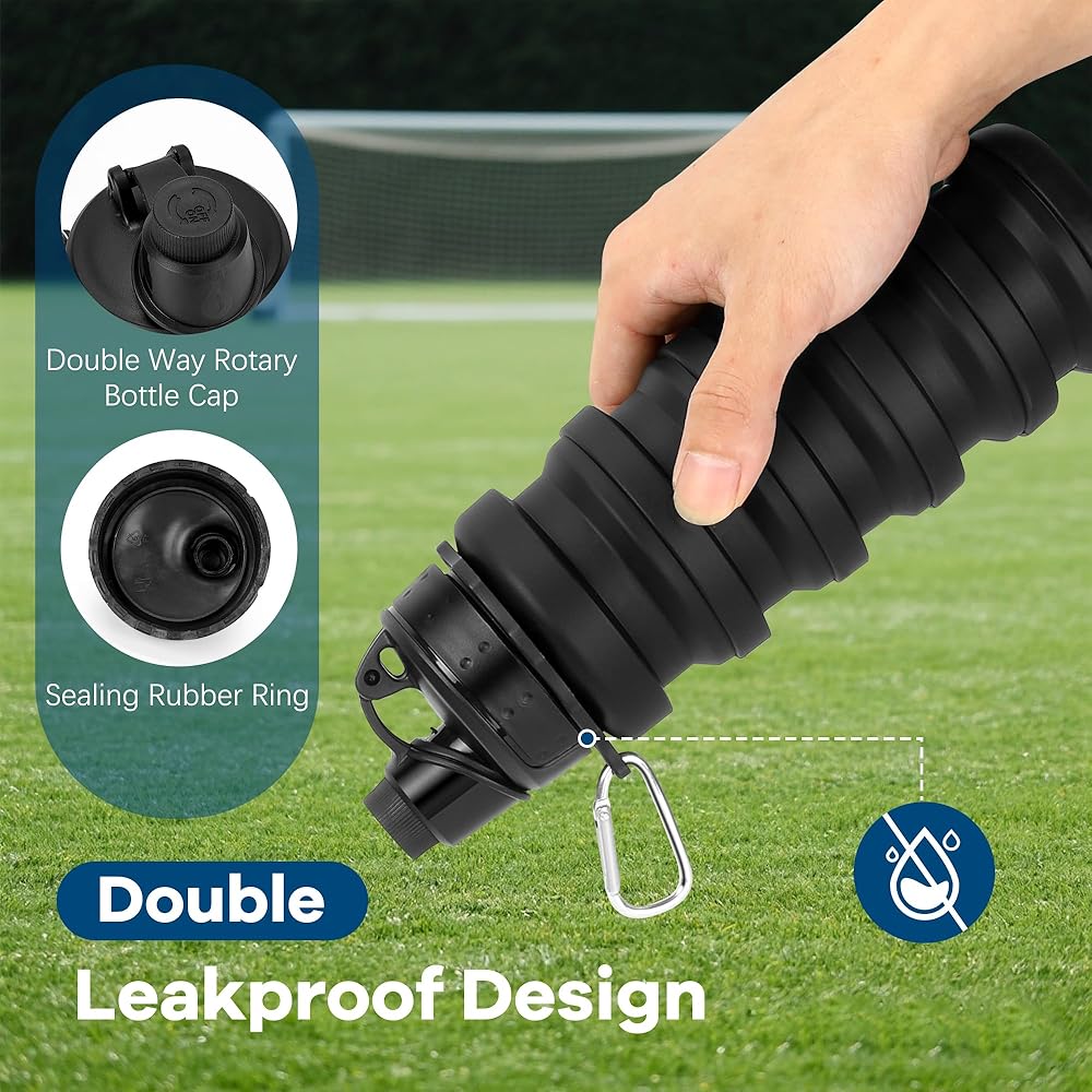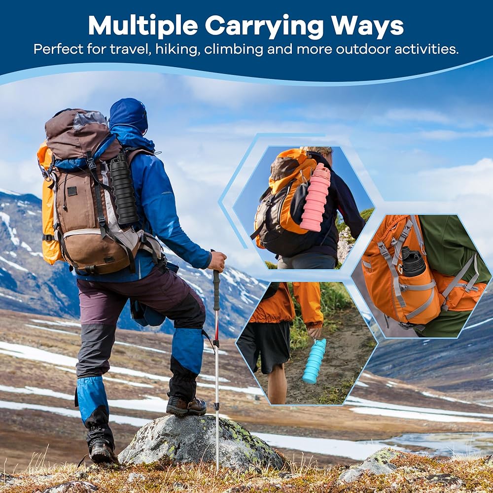سهلة الحمل وقابلة للطي: هل سئمت من زجاجات المياه كبيرة الحجم؟ تنكمش الزجاجة القابلة للطي بوزن 17 أونصة إلى 4.9 بوصة فقط، مما يجعلها ملائمة بسهولة في جيبك أو حقيبتك. تزن 140 جرامًا فقط وهي مجهزة بحلقة تسلق متينة من سبائك الألومنيوم، يمكنك ربطها بحقيبة الظهر أو حقيبة الصالة الرياضية أو حلقة الحزام - لم يكن الترطيب أثناء التنقل أسهل من أي وقت مضى!