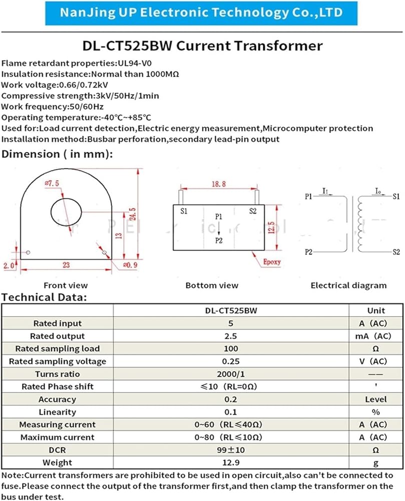 2 قطعة محول تيار متردد مصغر مستشعر PCB DL-CT525BW 2000:1 50A:25mA ملف مصغر AC CT