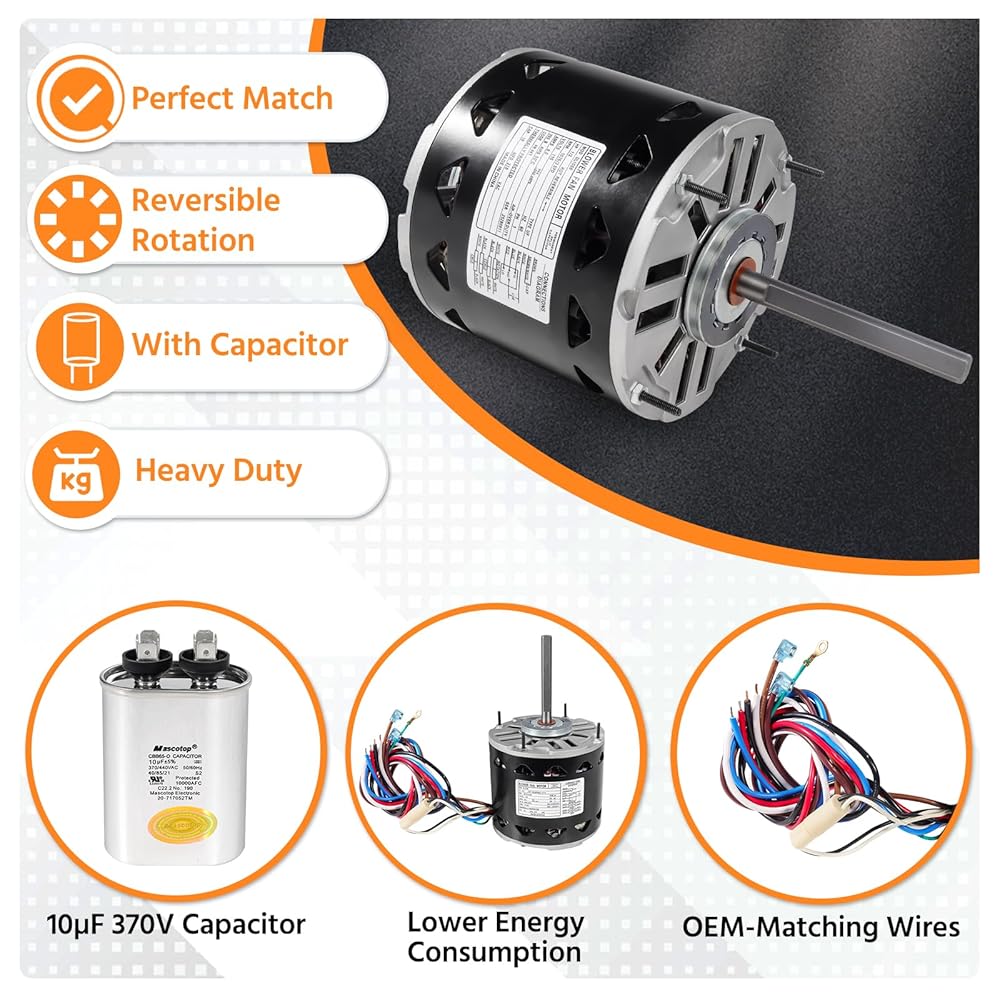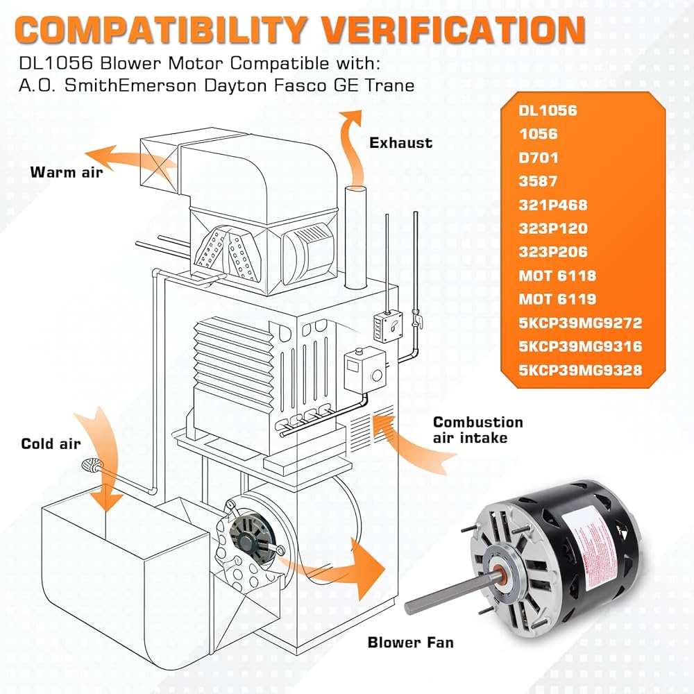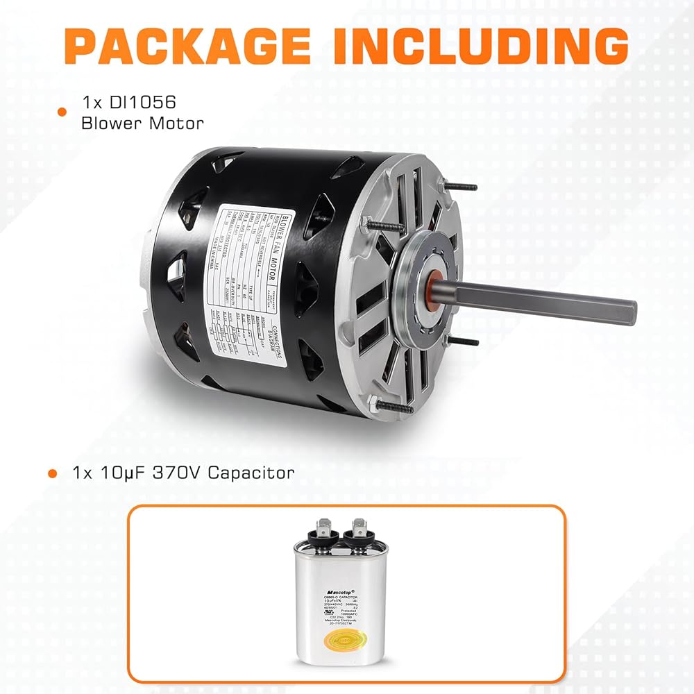 محرك منفاخ DL1056 1/2 حصان 1075 دورة في الدقيقة 3 سرعات 115 فولت 8 أمبير 48 إطار كم محمل، متوافق مع A.O.Smith DL1056 GE 3587 Fasco D701 Emerson Century Dayton (يتضمن مكثف)