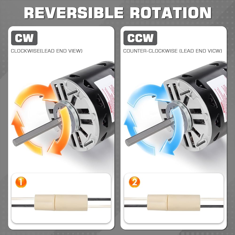 دوران عكسي: يدعم محرك المنفاخ DL1056 هذا الدوران في اتجاه عقارب الساعة (CW) وعكس اتجاه عقارب الساعة (CCW) للتركيب المرن. يتكيف بسهولة مع تكوينات مختلفة للأفران والمنفاخ ووحدات التدفئة والتهوية وتكييف الهواء (HVAC)، مما يضمن توافقًا واسعًا واستبدالًا خاليًا من المتاعب دون تعديل الأسلاك أو التركيب