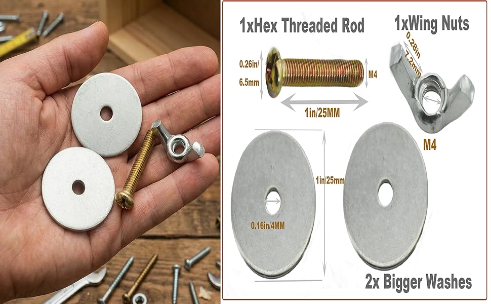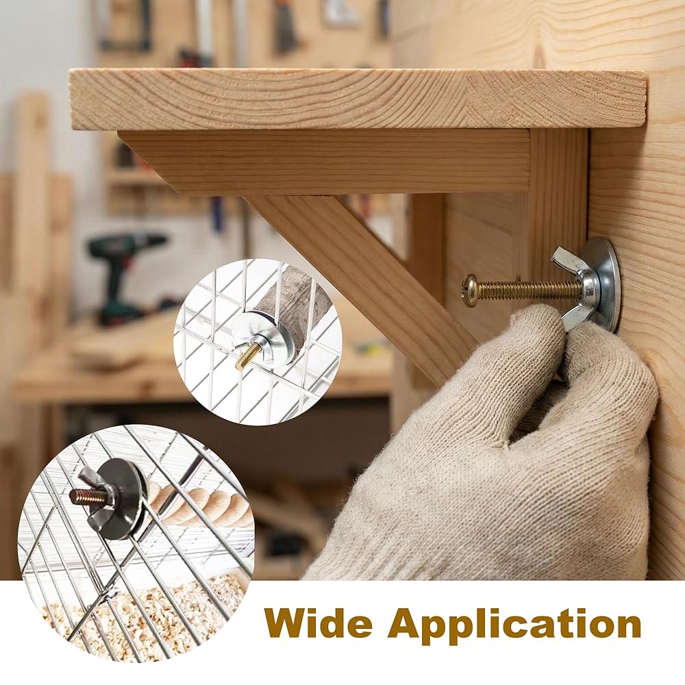 تطبيقات متعددة: مكونات متنوعة، كل مجموعة تشتمل على مسمار وغسالات وجوز جناح. ليس فقط لتثبيت الفروع في أقفاص الطيور ولكن أيضًا للمشروعات العامة التي تصنعها بنفسك، وبناء النماذج، والصيانة المنزلية، والحرف اليدوية للهواة.