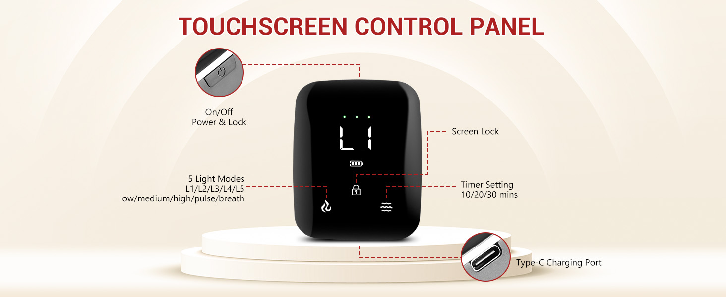 5 أوضاع قابلة للتخصيص و3 مؤقتات تلقائية: اختر من بين 5 أوضاع للعلاج بالضوء الأحمر: منخفض، متوسط، مرتفع، نبض 10 هرتز، ووضع التنفس. يأتي العلاج بالضوء الأحمر للأيدي المزود بمؤقتات إيقاف تلقائي مدتها 10/20/30 دقيقة مزودًا بميزة قفل اللمس الخاطئ لتشغيل سهل وخالي من القلق، مما يسمح لك بتخصيص كل جلسة
