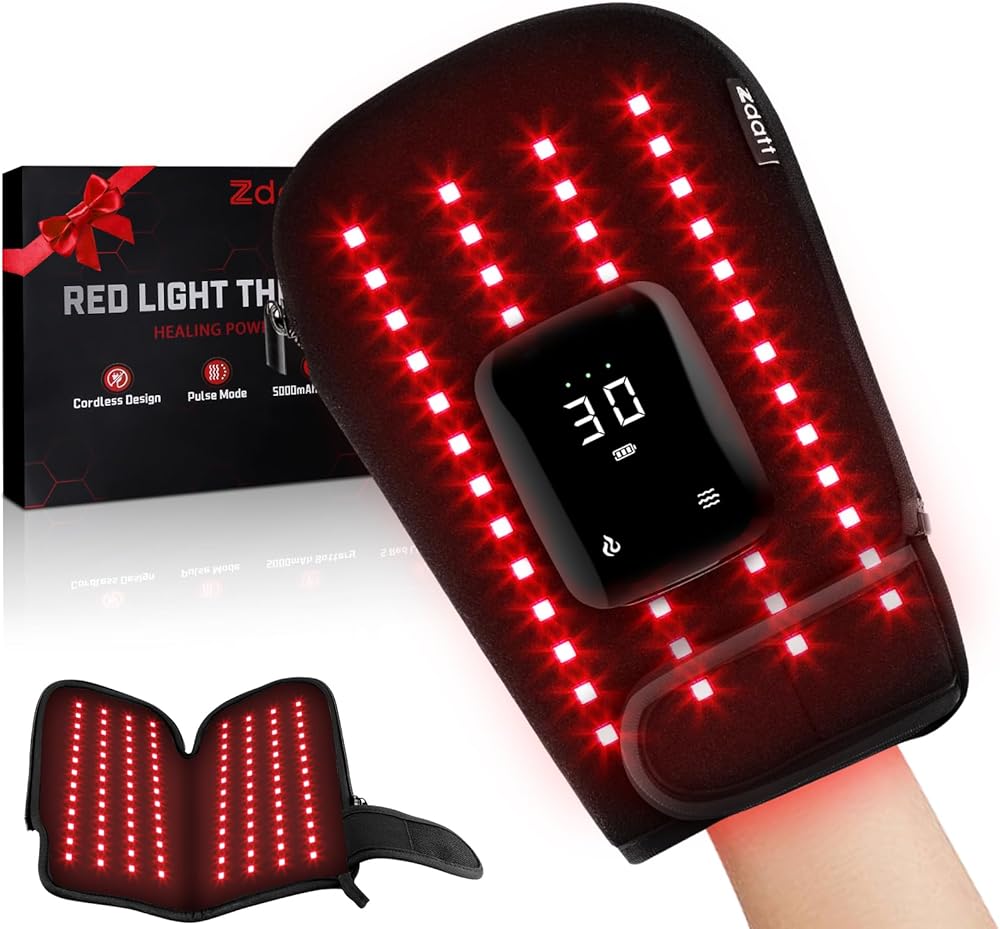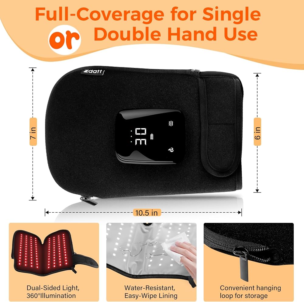 قفازات لاسلكية للعلاج بالضوء الأحمر لليد، تغطية كاملة 360 درجة، 100 مصباح LED مع 660 نانومتر و850 نانومتر للأشعة تحت الحمراء القريبة | 5000 مللي أمبير | مؤقت إيقاف التشغيل التلقائي سهل التنظيف