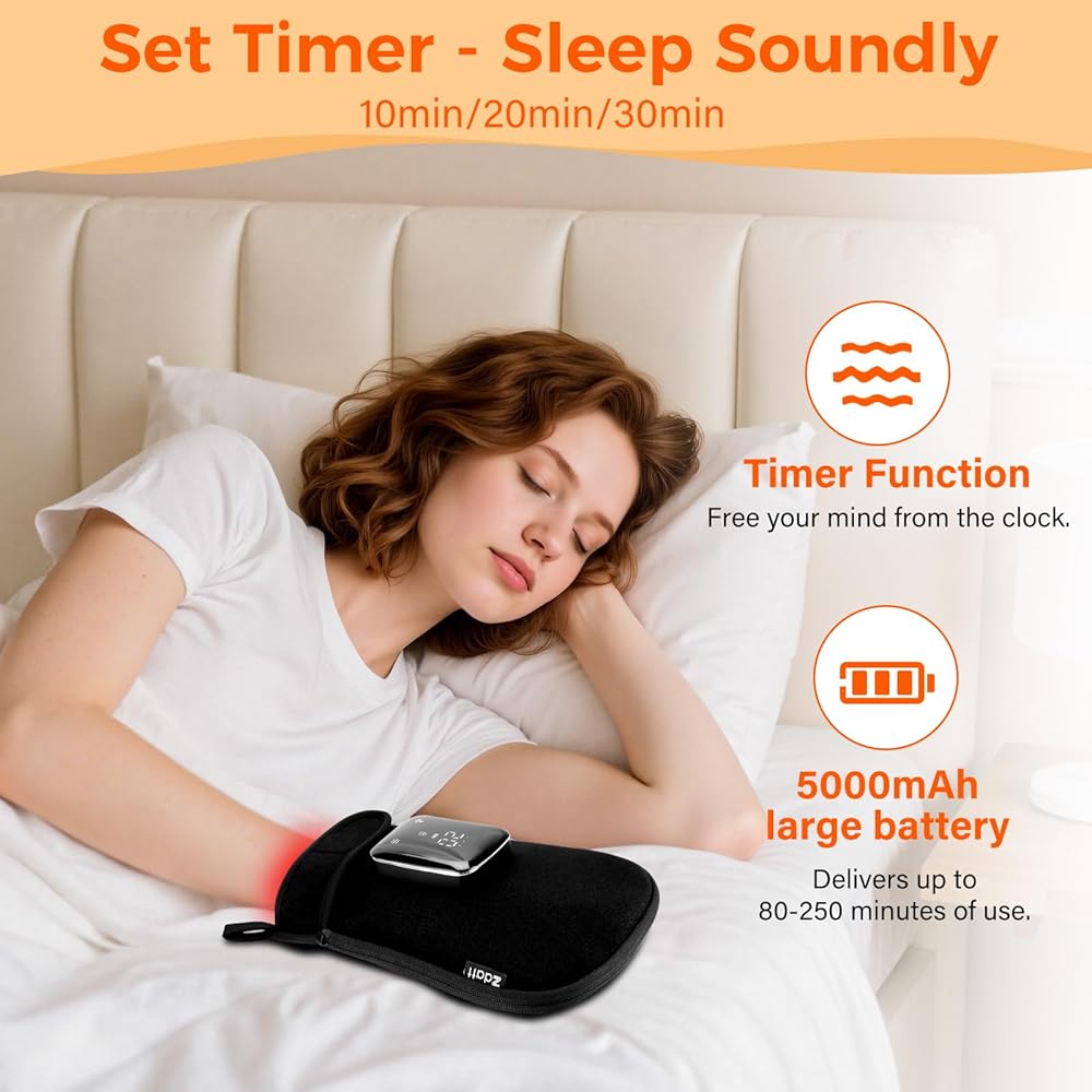 بطارية قابلة لإعادة الشحن تدوم طويلاً بقدرة 5000 مللي أمبير في الساعة: قفازات العلاج بالضوء الأحمر مدعومة ببطارية مدمجة قابلة لإعادة الشحن بقدرة 5000 مللي أمبير في الساعة، توفر القفازات استخدامًا ممتدًا بدون سلك بشحنة واحدة. يبلغ مقاس قفازات العلاج اليدوية بالضوء الأحمر 17.78 سم × 25.4 سم للحصول على ملمس مخصص. استمتع بالاسترخاء اليدوي المحمول في أي وقت وفي أي مكان - في المنزل أو المكتب أو أثناء السفر