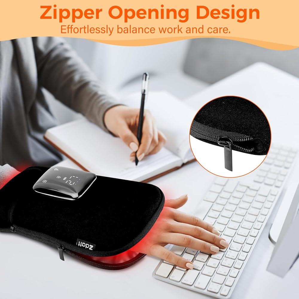 تصميم بسحاب كامل وحزام قابل للتعديل لملاءمة آمنة: تصميم بسحاب كامل يفتح بالكامل لسهولة الارتداء، مما يسمح باستخدام القفازات ليس فقط لليدين ولكن أيضًا للمعصمين ومفاصل الكوع، مع جعل الجزء الداخلي سهل التنظيف. يضمن حزام الخطاف والحلقة القابل للتعديل عند الفتحة ملاءمة آمنة ومخصصة لمختلف أحجام اليد، مما يحافظ على قفازات العلاج بالضوء الأحمر ثابتة في مكانها أثناء الاستخدام ويعزز تجربتك العامة.