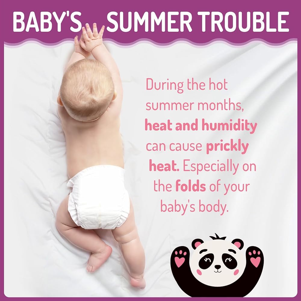 حماية بشرة الطفل في الصيف: تم تركيبه خصيصًا للحماية من حرارة الصيف والرطوبة، فهو يحمي بشرة الطفل الحساسة ويوفر راحة مستهدفة من مشاكل الحرارة الموسمية الشائكة.