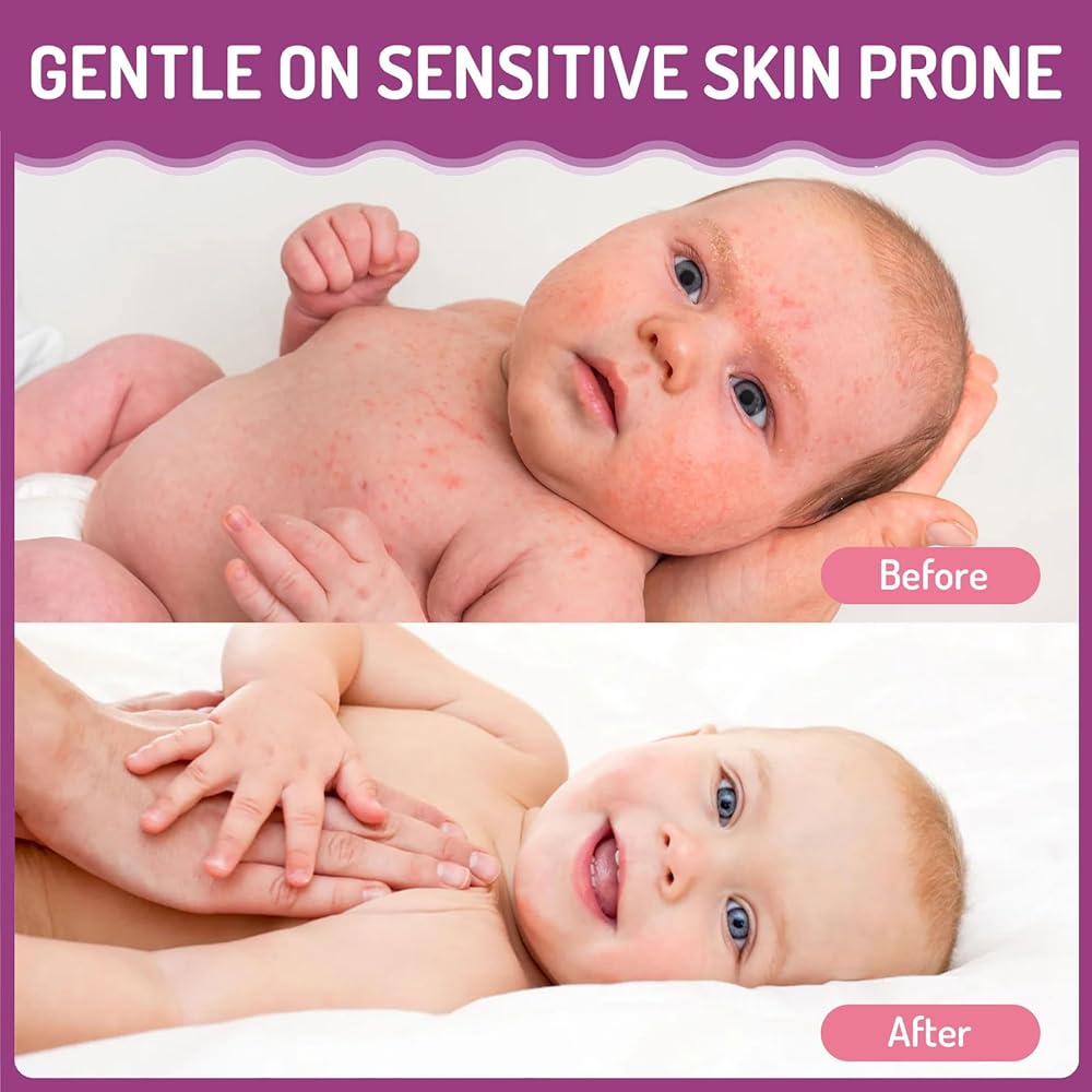 تركيبة طبيعية وآمنة للرضع: مصنوعة من مكونات طبيعية لطيفة، تم تطويرها حصريًا لبشرة الرضع. لا يسبب الحساسية، آمن للاستخدام اليومي على بشرة الطفل الحساسة.