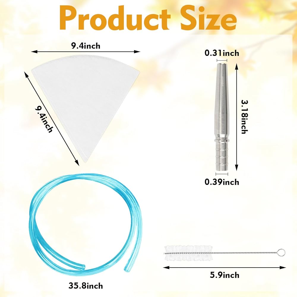 【مواد ممتازة】: لوازم شراب القيقب مصنوعة من مواد فاخرة. الصنابير والخطافات مصنوعة من الفولاذ المقاوم للصدأ، وهي متينة وتضمن الاستخدام طويل الأمد. أنبوب شراب القيقب مصنوع من بلاستيك عالي الجودة صالح للطعام، وتم تصميم المرشحات لإزالة الشوائب، مما يضمن عصارة القيقب الأكثر نقاءً وأمانًا لمنتجك النهائي.