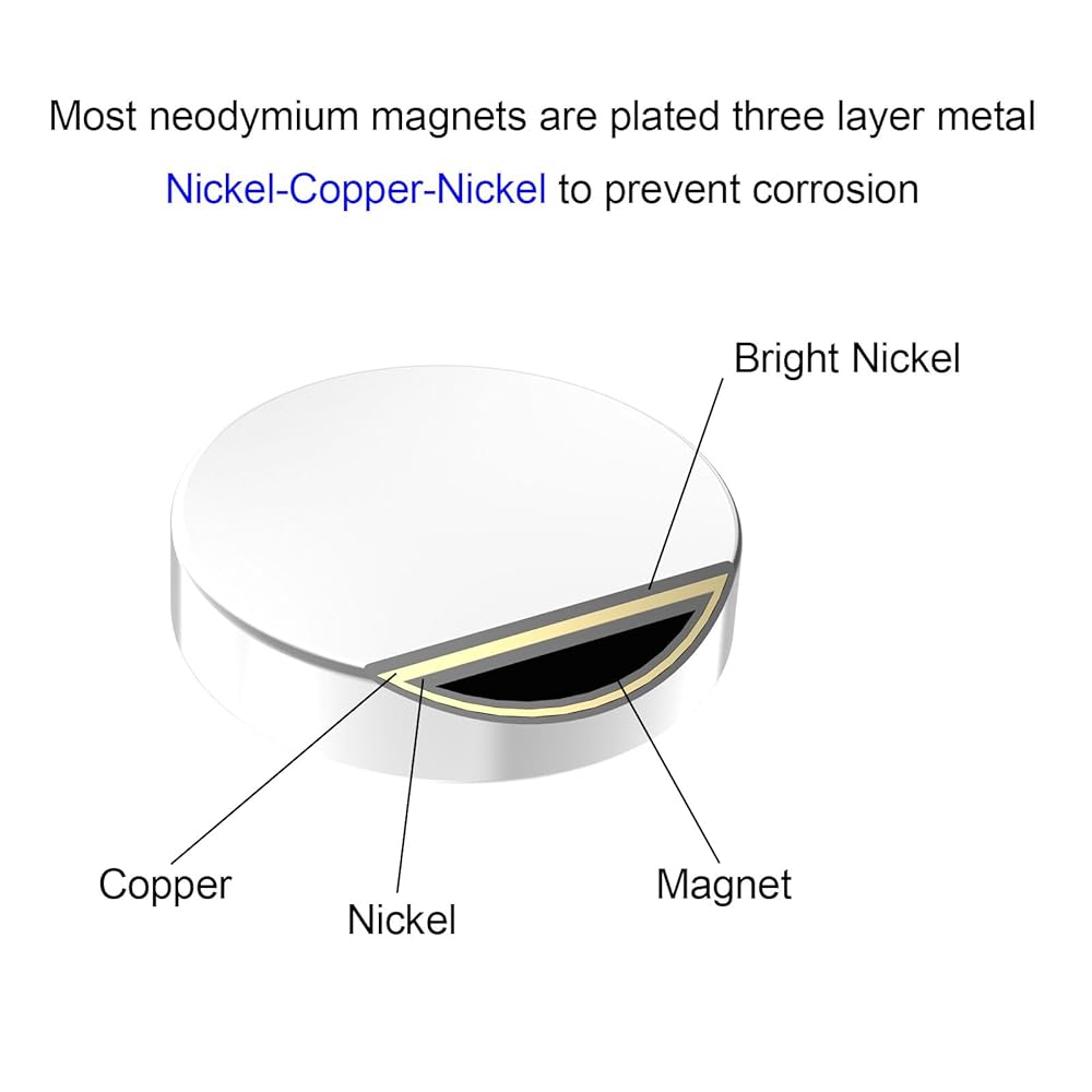 【طلاء مقاوم للصدأ】- مطلي بثلاث طبقات من النيكل والنحاس والنيكل، هذه المغناطيسات تقاوم الصدأ وتبقى في أفضل حالة حتى بعد التعرض الطويل للهواء.