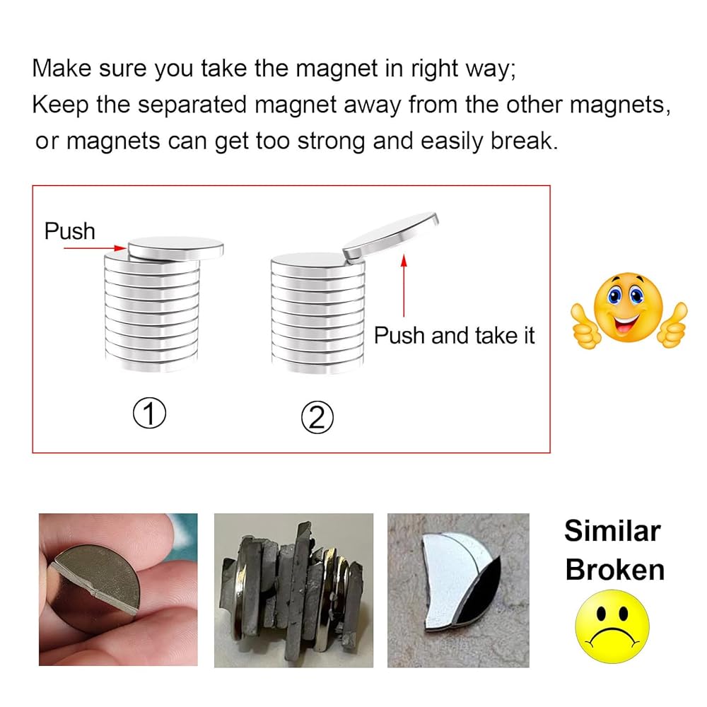 【السلامة أولاً】- تعامل بعناية! يمكن للمغناطيس القوي أن يضغط على الأصابع. عند فصل المغناطيسات الأكبر حجمًا، استخدم الطريقة الصحيحة لتجنب الكسر. احتفظ بالمغناطيس بعيدًا عن أجهزة تنظيم ضربات القلب وبعيدًا عن متناول الأطفال.