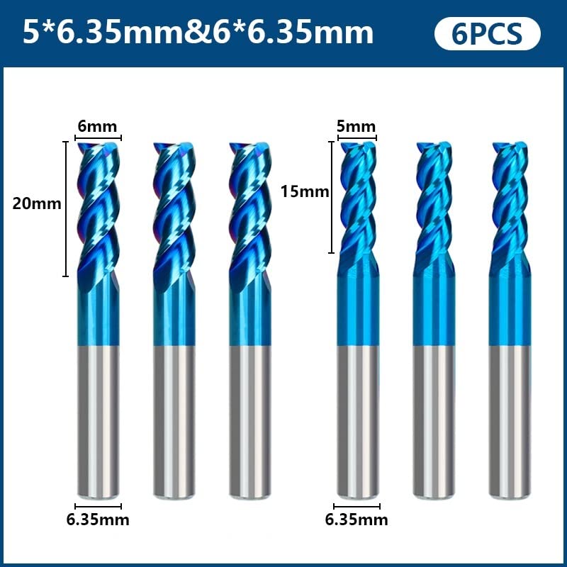 6 قطع كربيد نهاية قاطعة الطاحونة 3 الناي راوتر بت نانو الأزرق طلاء الألومنيوم قطع طحن أداة معدنية