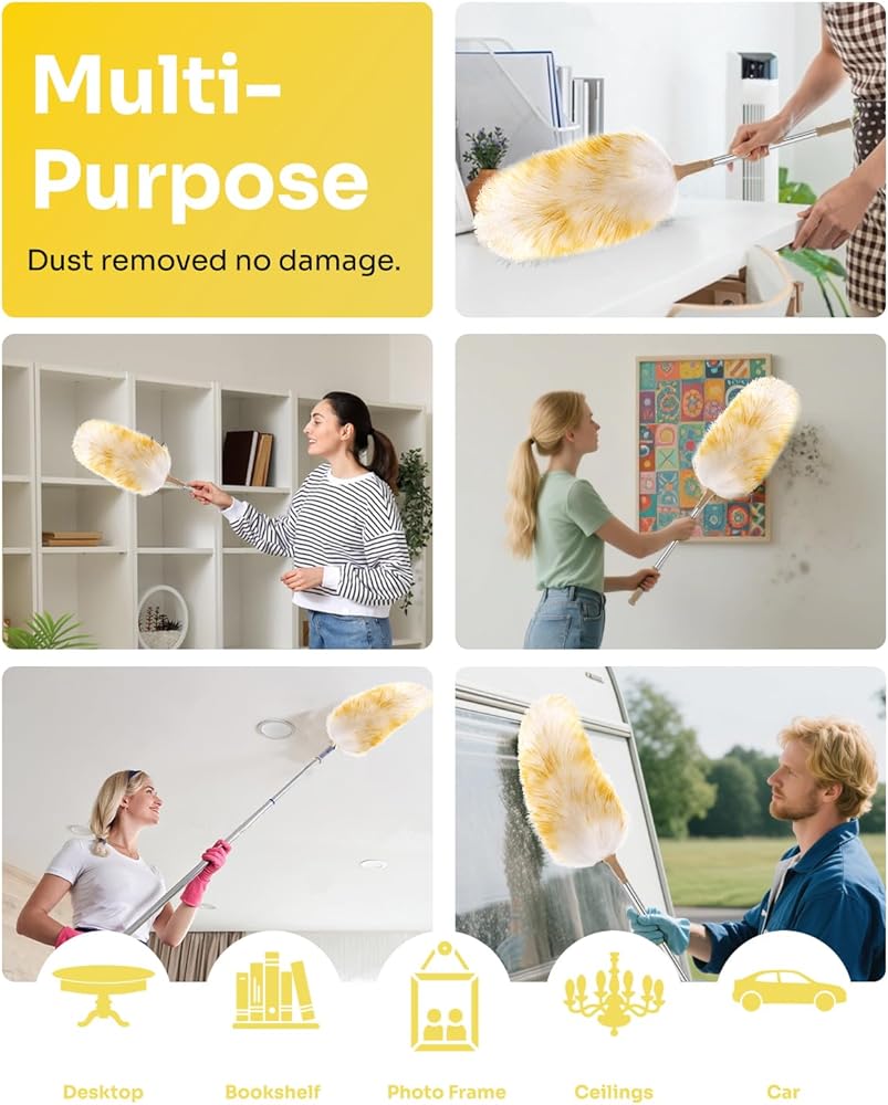 【صوف فاخر】مصنوع من صوف فائق النعومة وعالي الجودة، فهو لا يوفر ملمسًا ناعمًا فاخرًا فحسب، بل يحبس أيضًا 95% من الغبار دون تلف السطح.