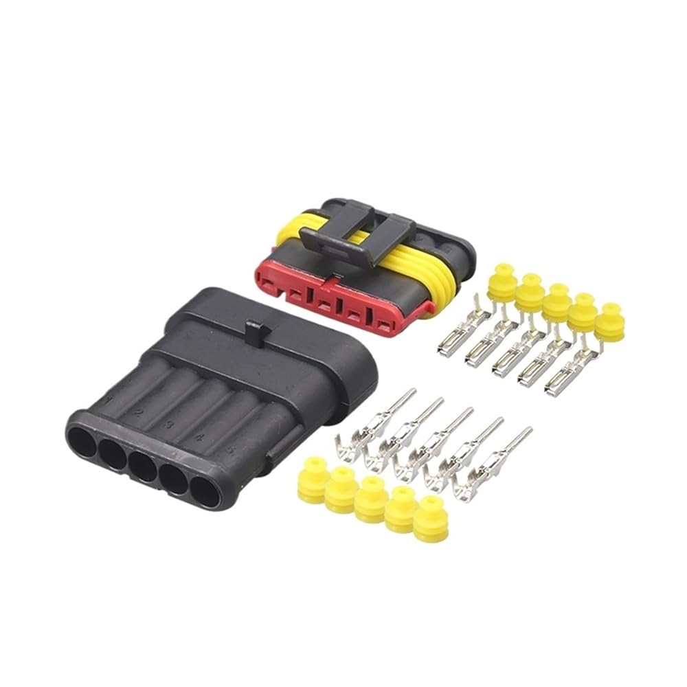 Fengpeng 2-5 مجموعات عدة 5pin Way AMP Super Seal مقاوم للماء سلك كهربائي موصل التوصيل للسيارة موصل مقاوم للمياه (2 مجموعة)