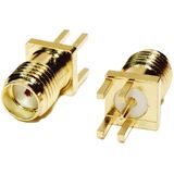 - SMA female for 1.6mm thick solder edge PCB mount straight RF connector