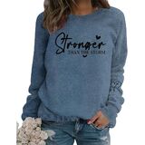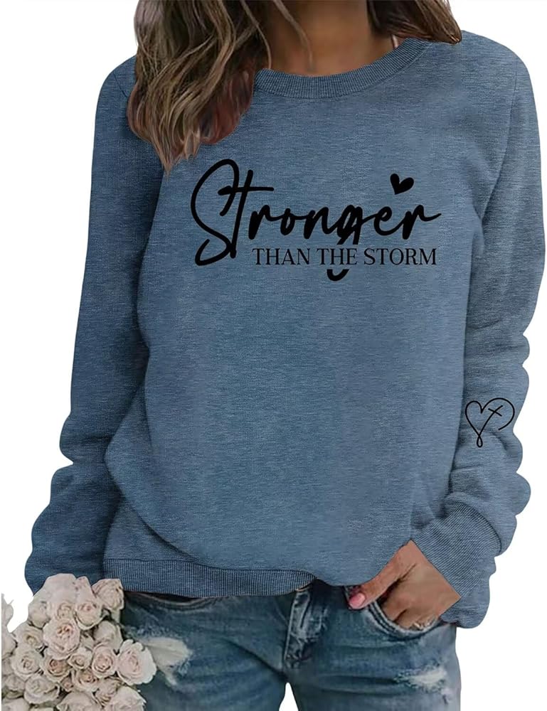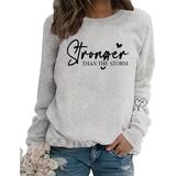 سويت شيرت مسيحي للنساء أقوى من العاصفة، قمصان بأكمام طويلة ورسومات ملهمة، بلوفر علوي in Kuwait