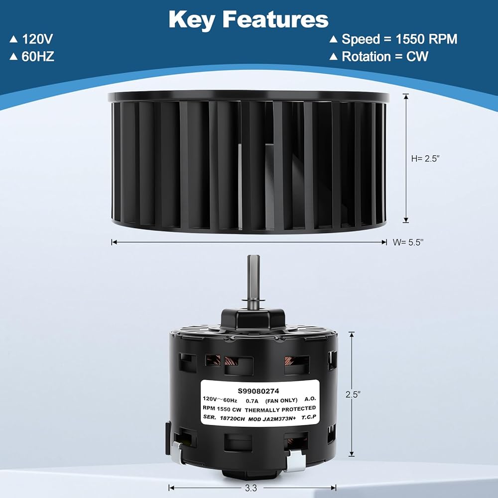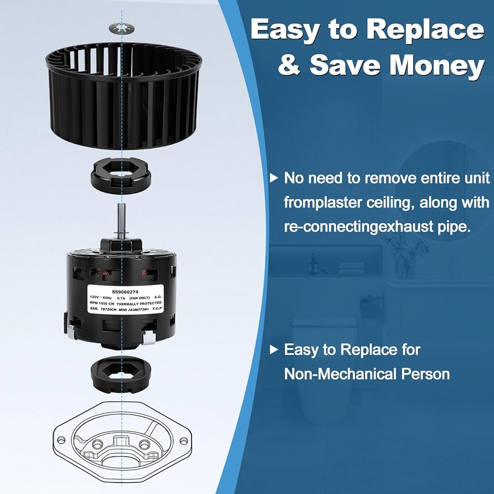 Upgraded Bathroom Fan Motor Replacement & Blower Wheel Kit:This upgraded bathroom exhaust fan motor and blower wheel assembly is designed to restore proper ventilation performance without the need to replace the entire fan housing, offering a practical solution for worn or failed motors.