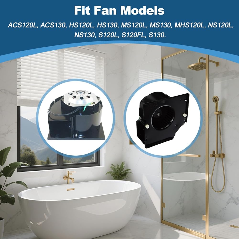 Wide Compatibility: Fits a variety of bathroom fan models including ACS120L, ACS130, HS120L, HS130, MS120L, MS130, MHS120L, NS120L, NS130, S120L, S120FL, S130.