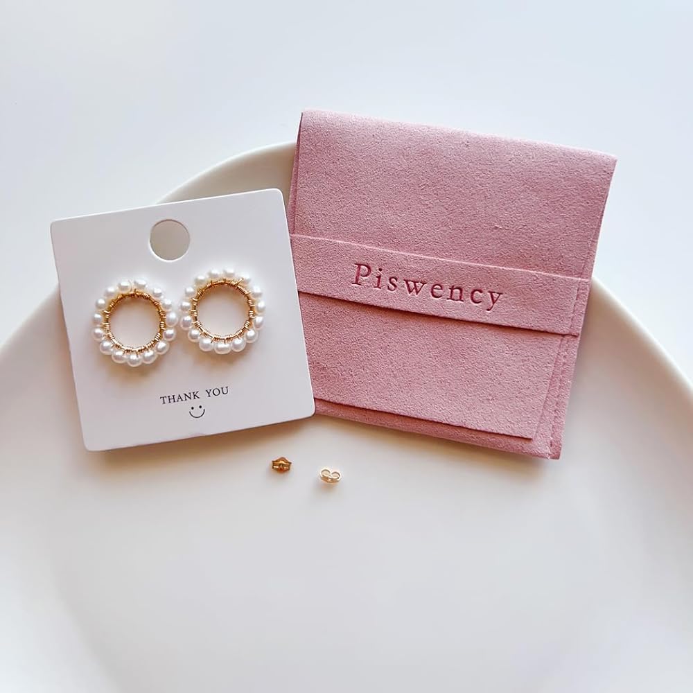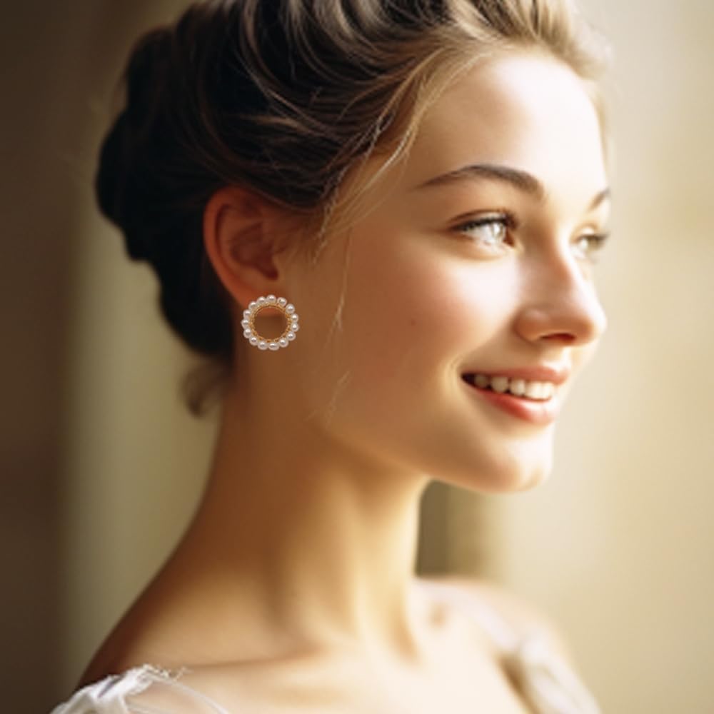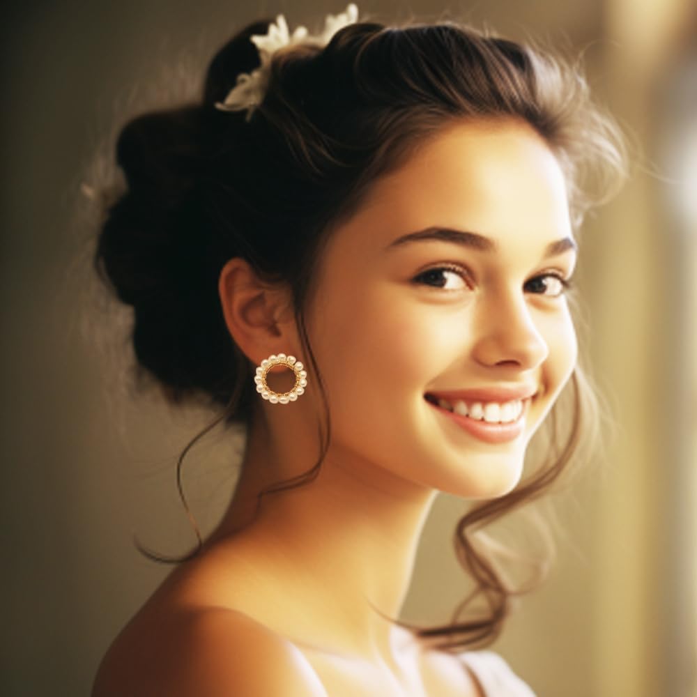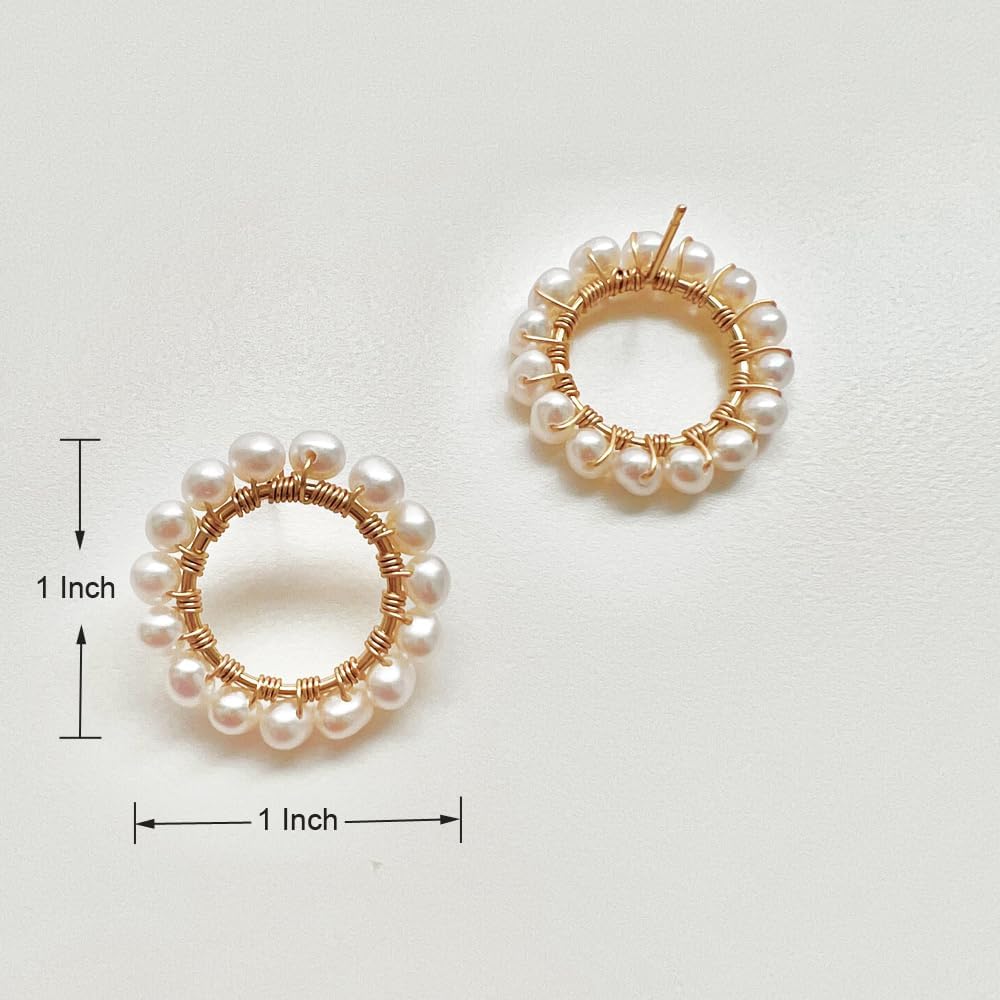 مجوهرات مصنوعة يدويًا - لؤلؤ المياه العذبة الحقيقي عالي الجودة تم اختياره يدويًا ومصنوع يدويًا من أقراط دائرية مملوءة بالذهب الأصفر عيار 14 قيراط، خالية من النيكل والرصاص ولا تسبب الحساسية.