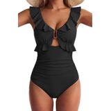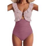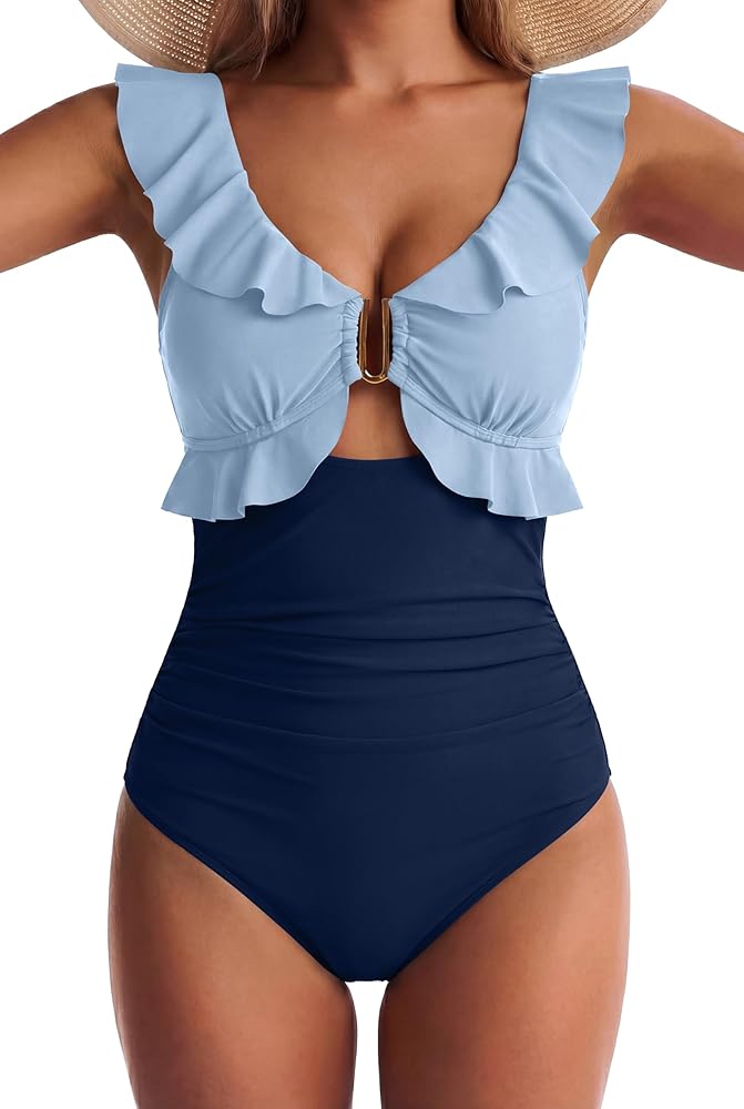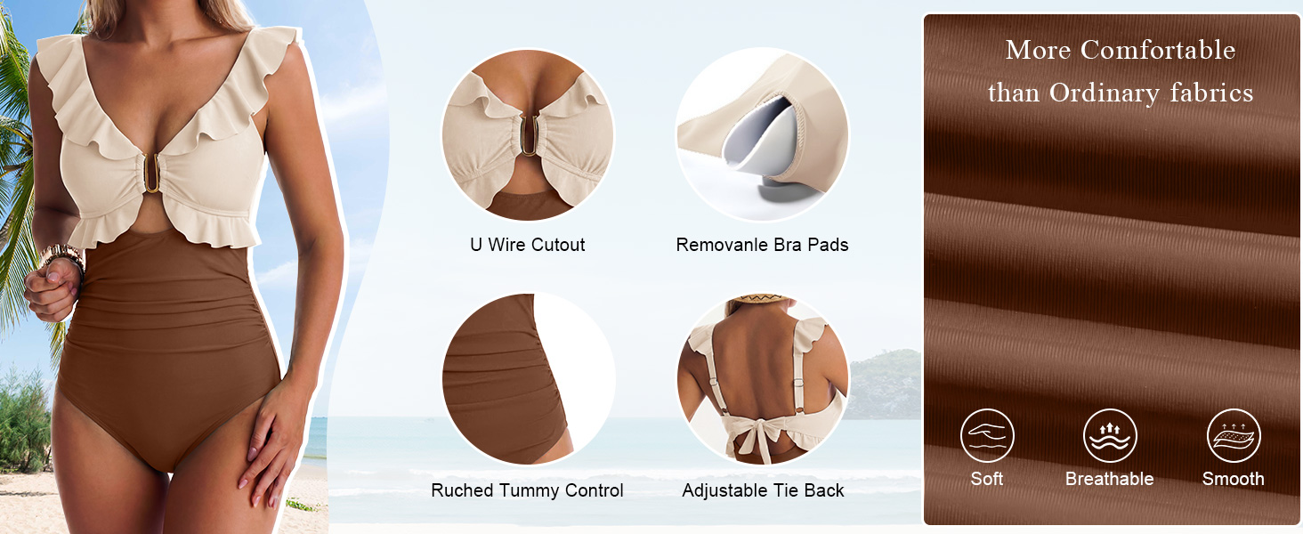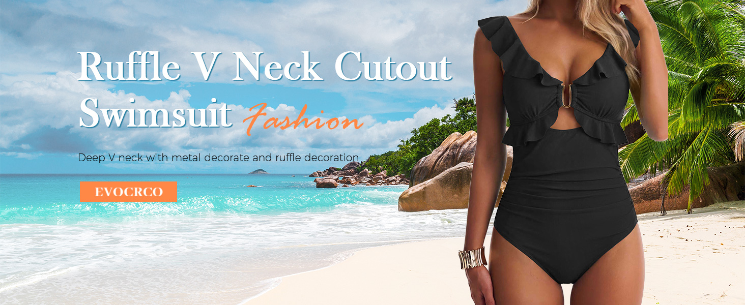 السمات: تتميز بدلة السباحة EVOCRCO بخط رقبة على شكل حرف V مكشكش، وأكواب ناعمة قابلة للإزالة مع دعم عالي للصدر. زخرفة معدنية رقيقة، وتفاصيل عقدة في الخلف، مما يضمن لك مظهرًا لطيفًا ومرحًا أثناء الاستمتاع بأشعة الشمس.