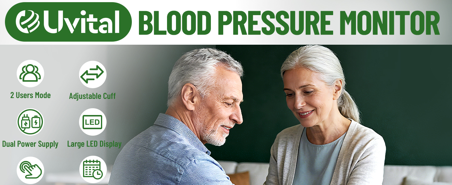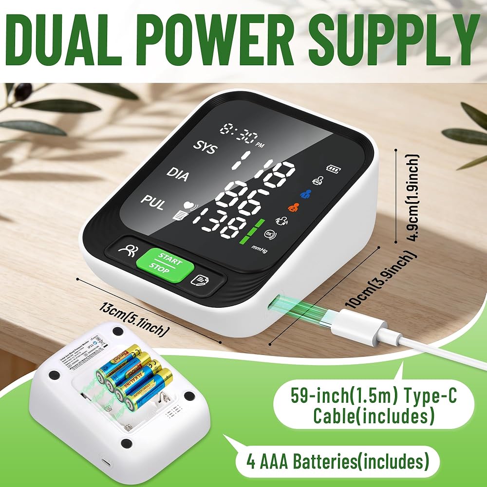 جهاز مراقبة ضغط الدم من يوفيتال للاستخدام المنزلي، جهاز قياس ضغط الدم التلقائي من أعلى الذراع مع أساور كبيرة قابلة للتعديل، جهاز مراقبة ضغط الدم لكبار السن مع شاشة LED كبيرة مقاس 3.7 بوصة، 2x199 سجل