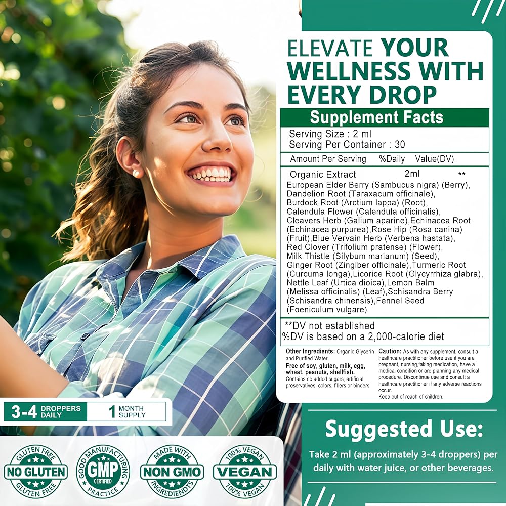 مكونات عشبية نقية ممتازة: نحن نعطي الأولوية للجودة والنقاء في كل زجاجة. تتميز تركيبتنا بمستخلصات نباتية عالية الجودة، بما في ذلك نبات البلسان وجذور الهندباء وجذور الأرقطيون والسواطير والبرسيم الأحمر وشوك الحليب. إنه غير معدّل وراثيًا وخالي من الغلوتين وخالي من الألوان الاصطناعية والنكهات والمحليات والمواد المسببة للحساسية الرئيسية. تم تصنيعه في منشأة متوافقة مع ممارسات التصنيع الجيدة (GMP) باستخدام عملية استخلاص لطيفة لضمان الحصول على مكمل دعم ليمفاوي نظيف وجدير بالثقة ومتميز.*