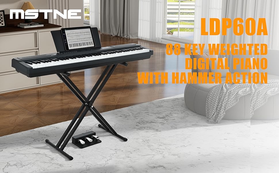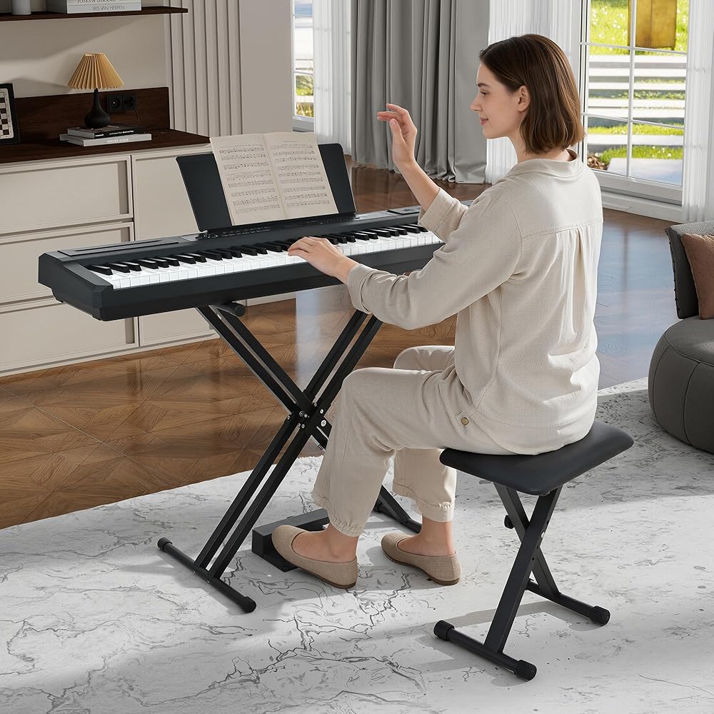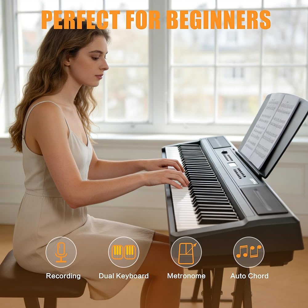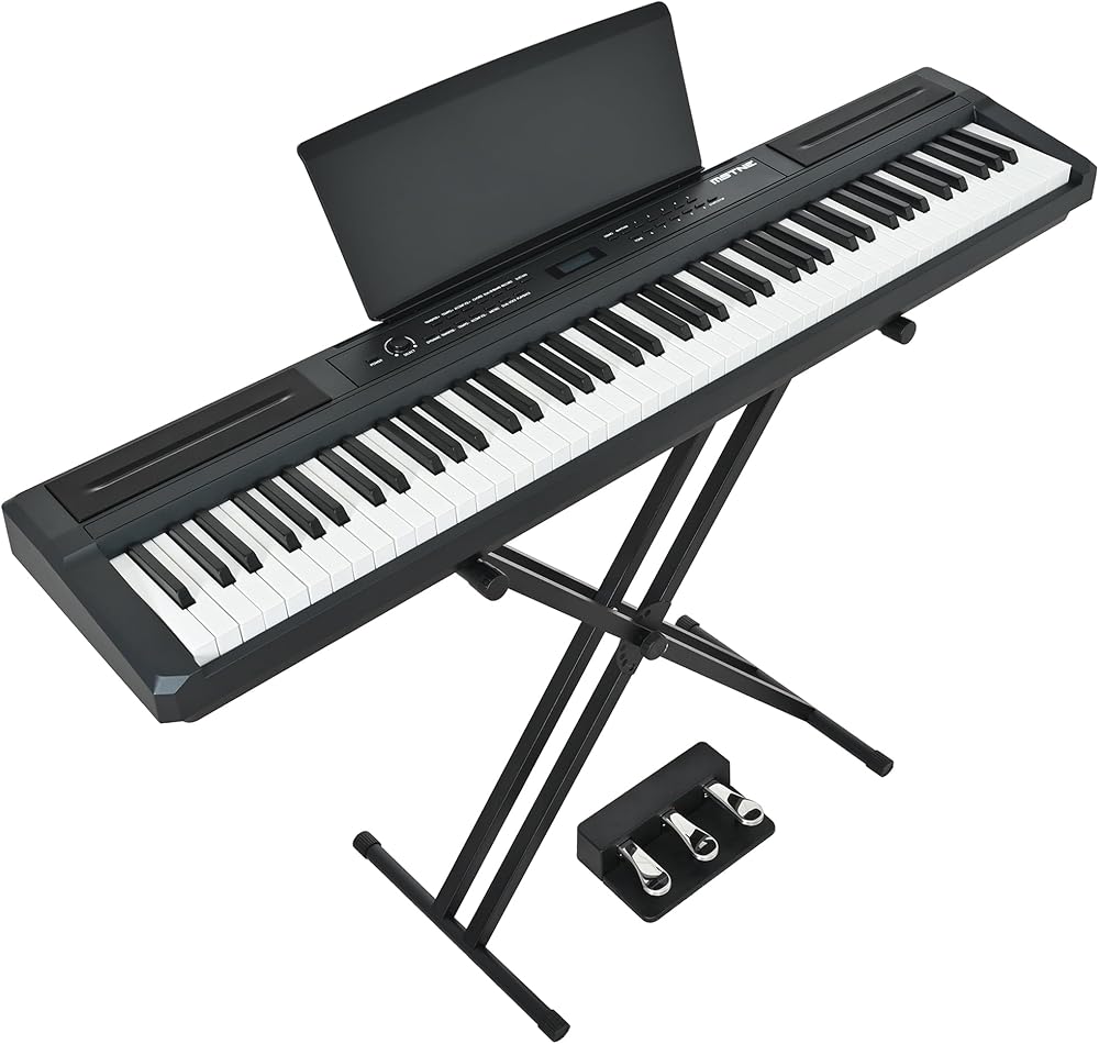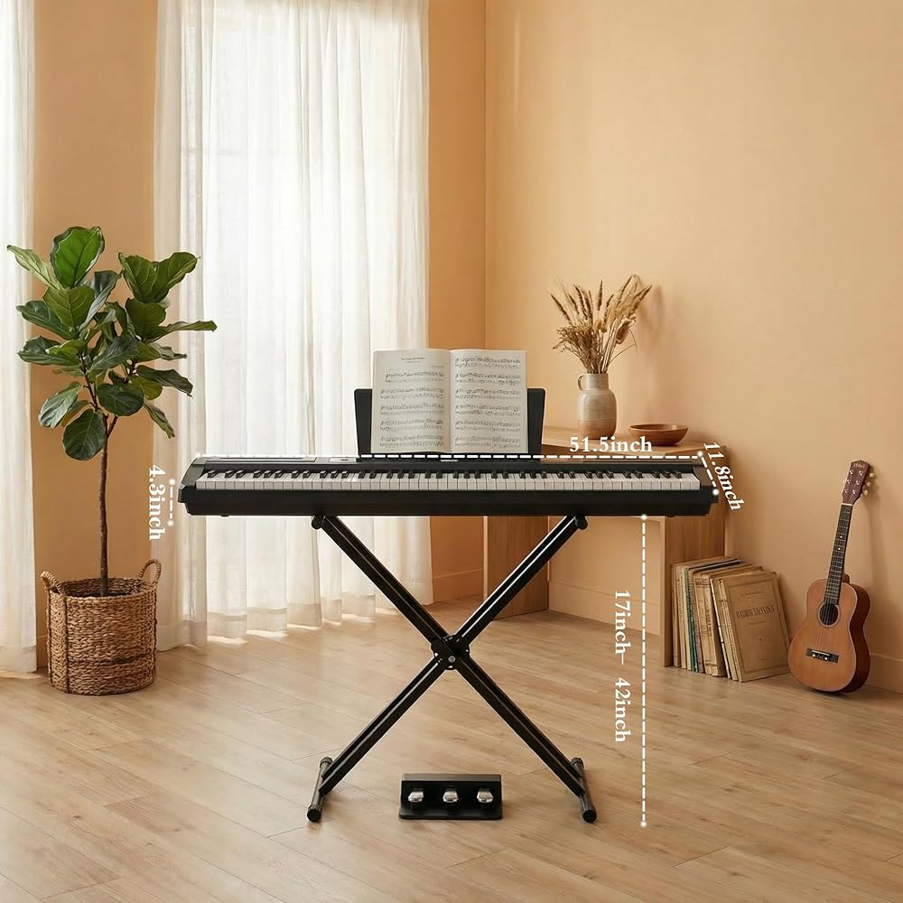 بيانو رقمي مكون من 88 مفتاحًا ومطرقة للوحة المفاتيح، لوحة مفاتيح بيانو كهربائية كاملة الحجم مع حامل قابل للتعديل، لوحة وظيفية قوية، وحدة 3 دواسات للمبتدئين والمتوسطين (أسود)