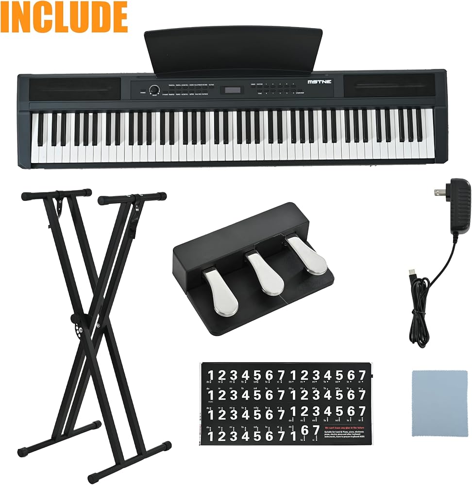 【المجموعة الكاملة للمبتدئين】: البيانو الكهربائي MSTNE 88 هو عبارة عن حزمة بداية كاملة. تأتي مجهزة بحامل قوي مزدوج X، ودواسة معدنية ثلاثية، وملصقات مفاتيح البيانو، وحامل الموسيقى، ومحول الطاقة، وغطاء من القماش. اضبط ارتفاع الدعامة لتوفير الراحة. مما يسمح لك بالبدء بسرعة في رحلتك الموسيقية.
