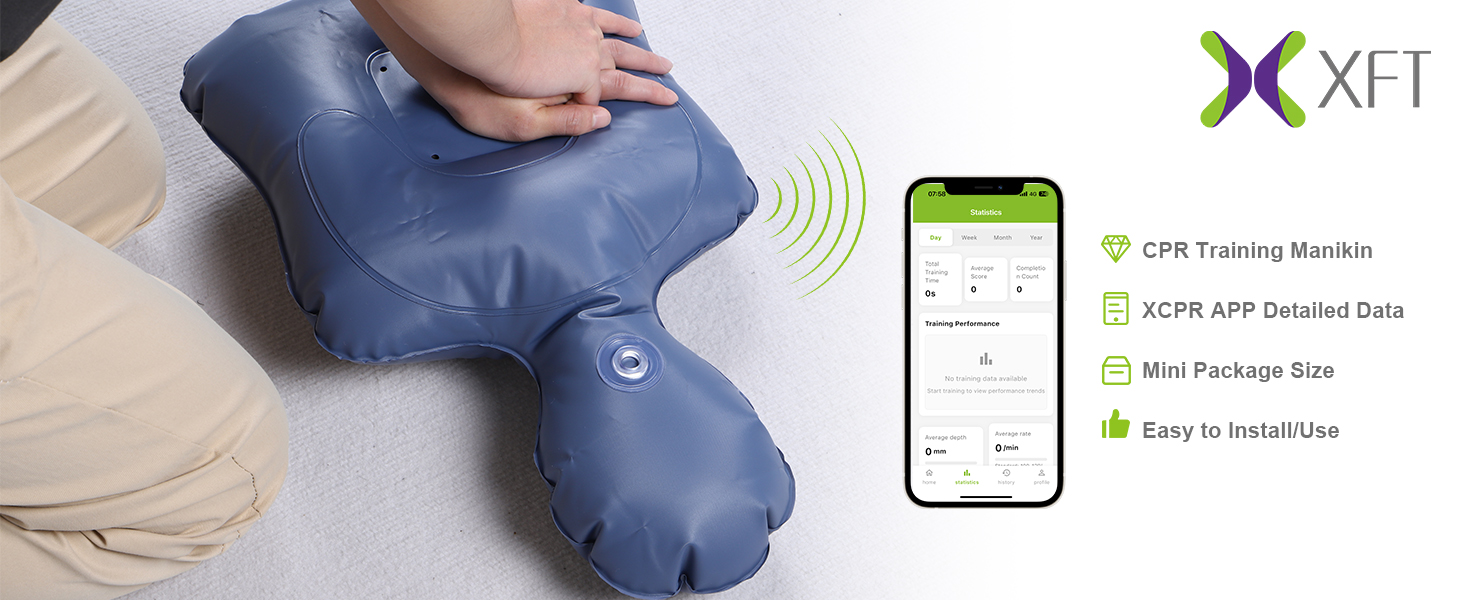 【سهلة الاستخدام: 1. افتح جهاز ردود الفعل CPR وقم بتثبيت بطاريتين AAA (غير متضمنة). 2. استخدم مضخة الهواء المرفقة وقم بالنفخ لمدة 10-15 ثانية تقريبًا (تتضمن مجموعة أدوات التدريب على الإنعاش القلبي الرئوي مضخة هواء كهربائية، ولا تحتاج إلى النفخ بفمك). 3. قم بتثبيت جهاز ملاحظات الإنعاش القلبي الرئوي في الأخدود الموجود على تماثيل الإنعاش القلبي الرئوي لبدء ممارسة الإنعاش القلبي الرئوي. ملاحظة: يمكنك تنزيل XCPR على هاتفك، وتوصيله بمحول Bluetooth، ومن ثم التدرب عليه لاختبار بيانات الضغط بشكل فعال.