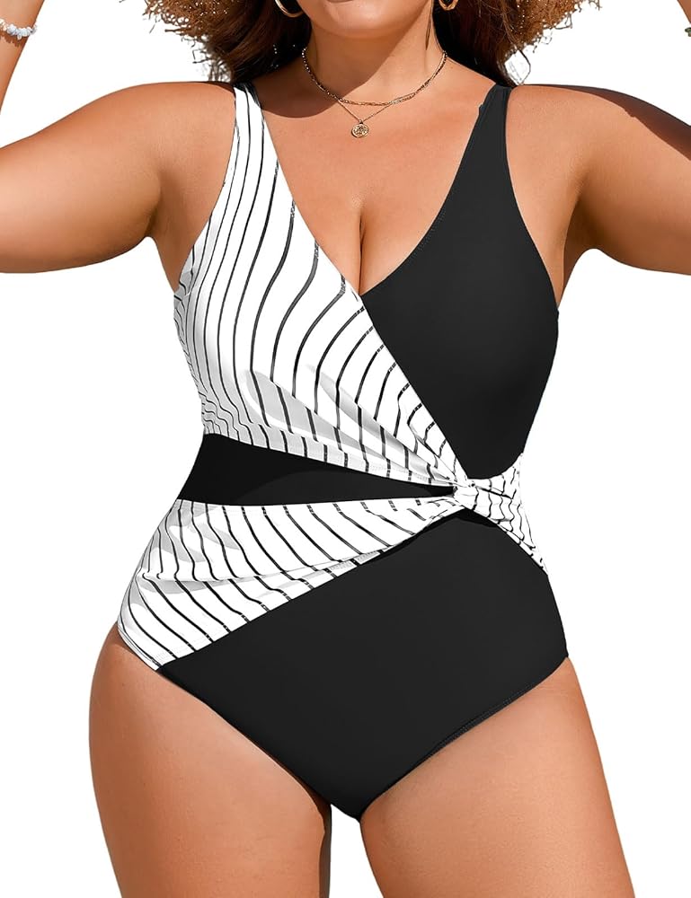 • 【ملابس سباحة نسائية من قطعة واحدة】 بدلة استحمام بمقاس كبير للنساء تتميز برقبة على شكل حرف V، وتصميم ملتوي قديم عند الخصر، وفتحة، وتغطية خلفية كاملة وأشرطة قابلة للتعديل، مما يجعل جسمك أنحف وأرجل أطول وتبدو أكثر سحرًا.