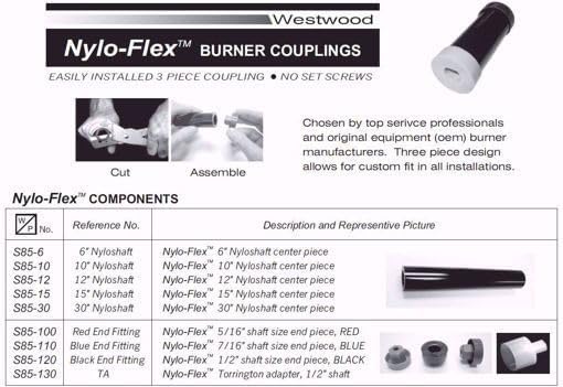S85-12 Nylo-Flex 12 بوصة عمود اقتران مقطوع ليناسب الهيكل الطويل يناسب Beckett AF/AFG، Wayne، Carlin Burners