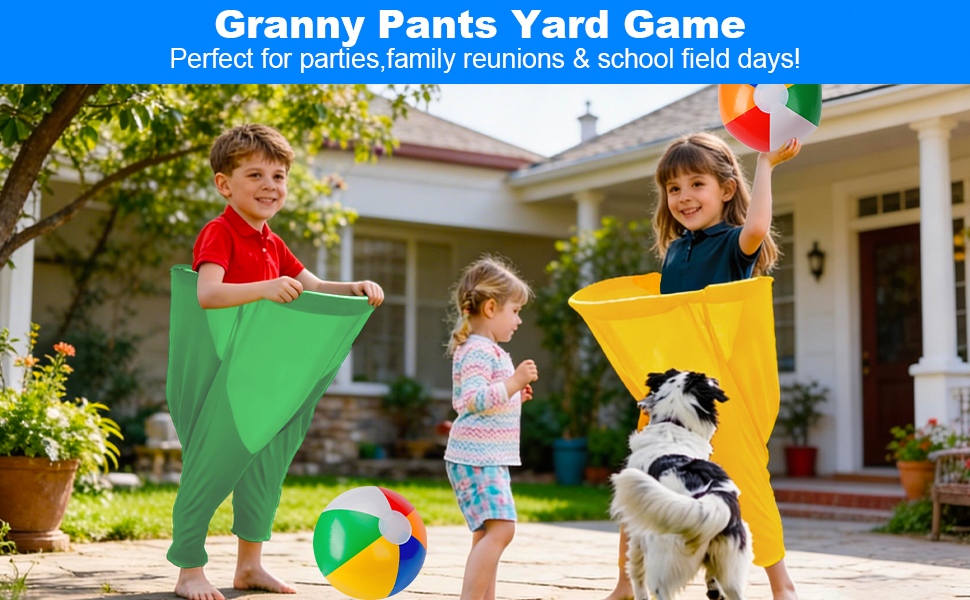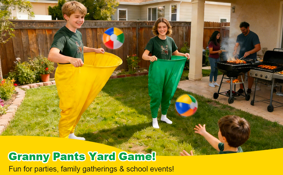 قواعد بسيطة وأقصى قدر من المرح - ألعاب الحديقة للأطفال: نفخ الكرات، وارتدي بنطال الجدة، وابدأ في الرمي أو السباق! تشعل السراويل كبيرة الحجم الجمهور على الفور وتجعل اللعبة أكثر إثارة. لعبة بنطال الجدة هذه للأطفال من عمر 4 إلى 7 سنوات تجمع الجميع معًا للاستمتاع بأوقات سعيدة لا تُنسى وأجواء تنافسية ودية
