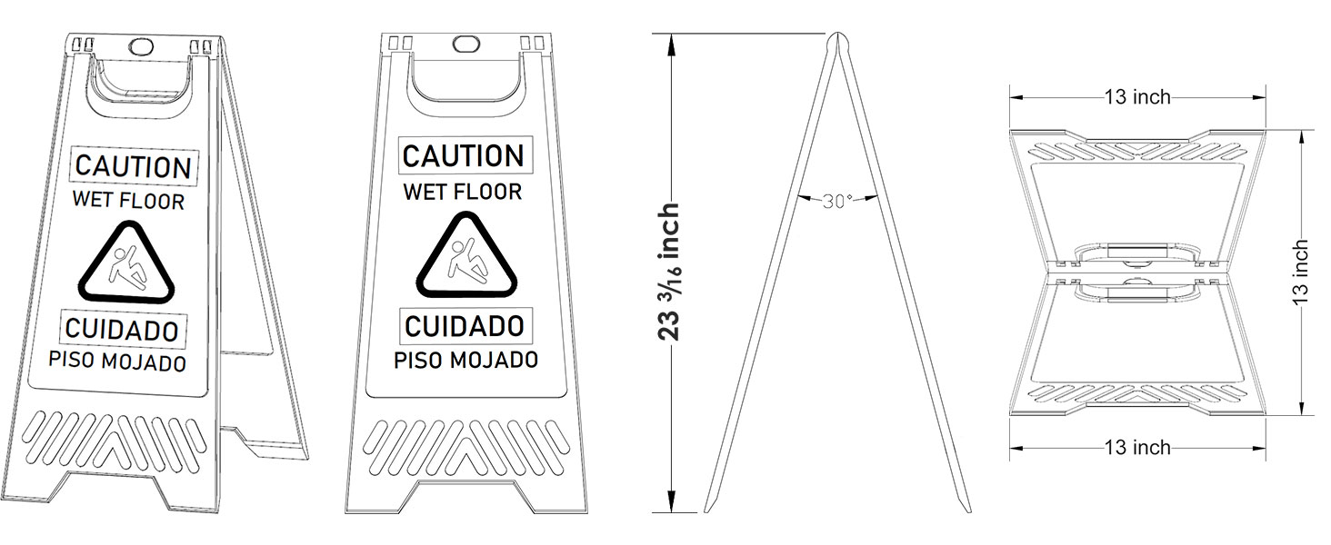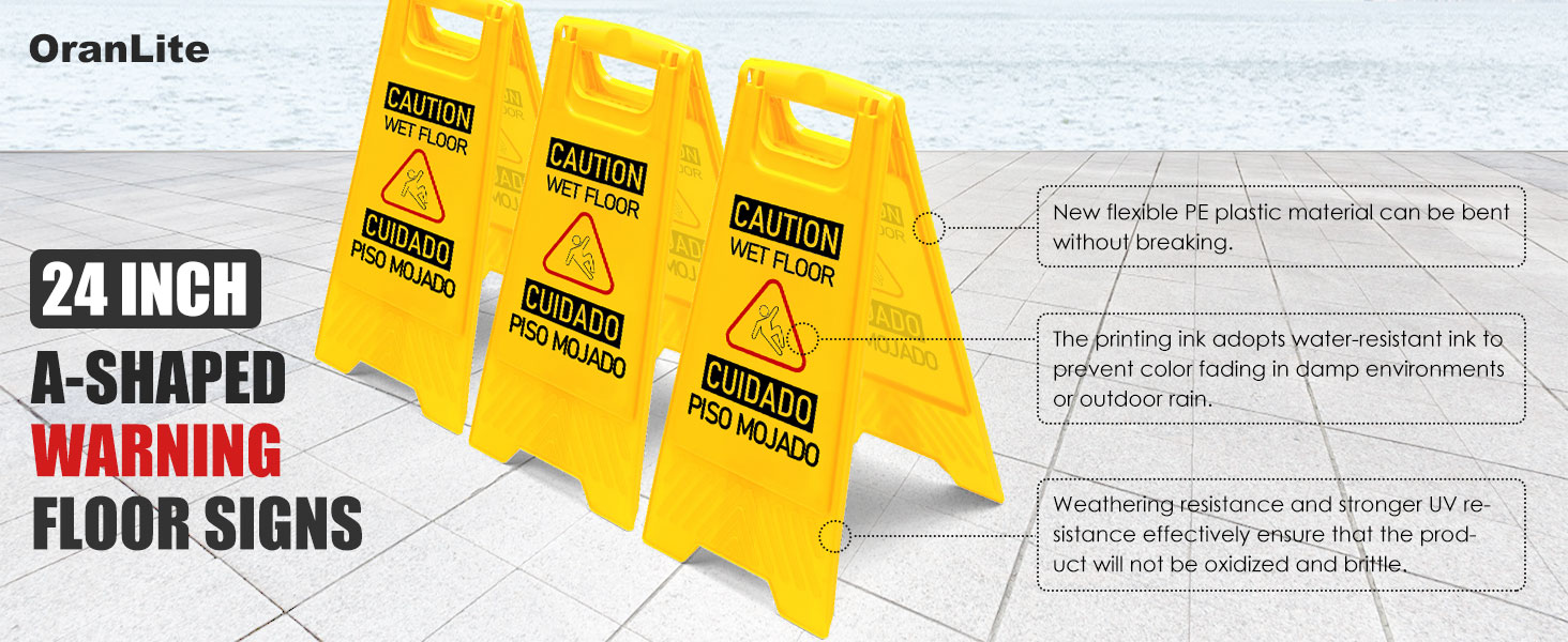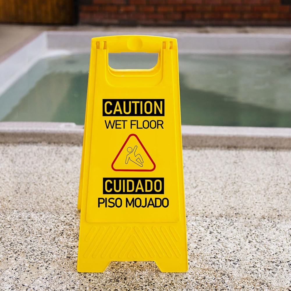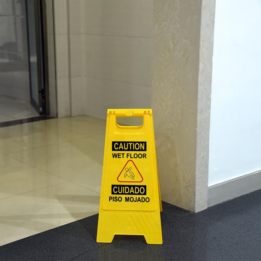 تحذير عالي الوضوح على الوجهين --- مصممة لجذب الانتباه على الفور، تتميز اللافتة برسائل ثنائية اللغة مشرقة وجريئة على كلا الجانبين. يضمن لونه الواضح للغاية ورمز "الأرضية المبللة الحذر" الواضح رؤية تحذيرك من أي زاوية، مما يساعد على منع الانزلاق والسقوط.