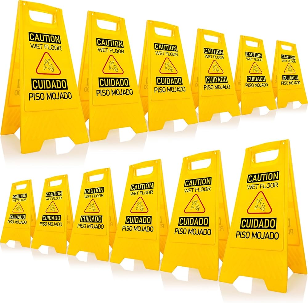 12 قطعة من لافتات الأرضيات المبللة ثنائية اللغة، علامات تحذير مزدوجة الجوانب بإطار على شكل حرف A للاستخدام التجاري الداخلي والخارجي، قابلة للطي وقوية للمطبخ وحمام السباحة والفندق وأماكن العمل