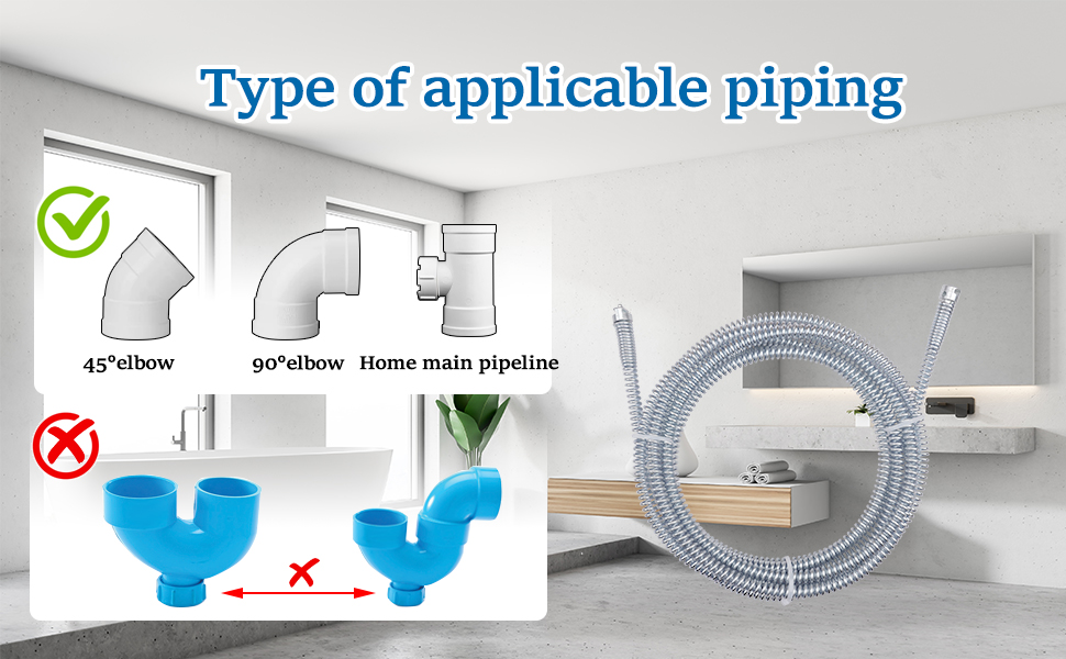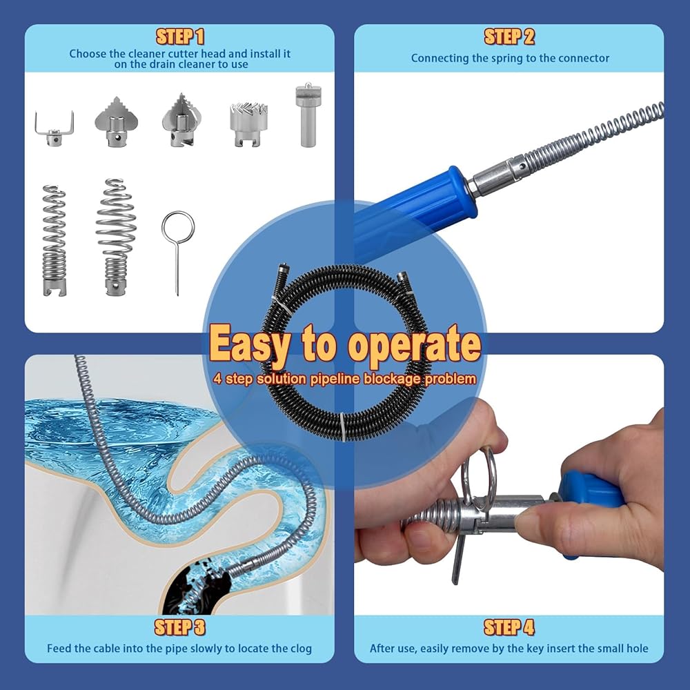 سهل الاستخدام: يتميز تنظيف أنبوب الصرف الحلزوني للثعبان الصحي بالمرونة والقوة، ويمكن ثني الزنبرك المرن بأكثر من 90 درجة دون أن ينكسر أو يلتوي، حتى تتمكن من إزالة الانسداد في الأنبوب بكفاءة. حتى تتمكن من عمل انحناءات ضيقة بسهولة. تم تجهيز الثعبان الخاص بنا بملحق حفر وكرنك يمكن تشغيله يدويًا أو بالطاقة لإزالة الانسدادات بشكل أكثر سهولة وفعالية