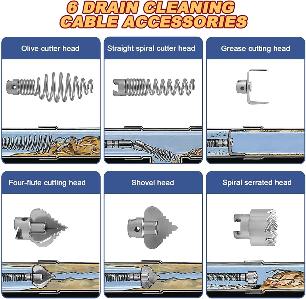 التجميع السريع: يحتوي منظف الأنابيب الحلزوني على طرف مشقوق أنثوي يجعل إضافة حاملات الشفرات أمرًا سهلاً، مع محول يدوي واحد ومحول كهربائي واحد، مناسب للتشغيل المزدوج