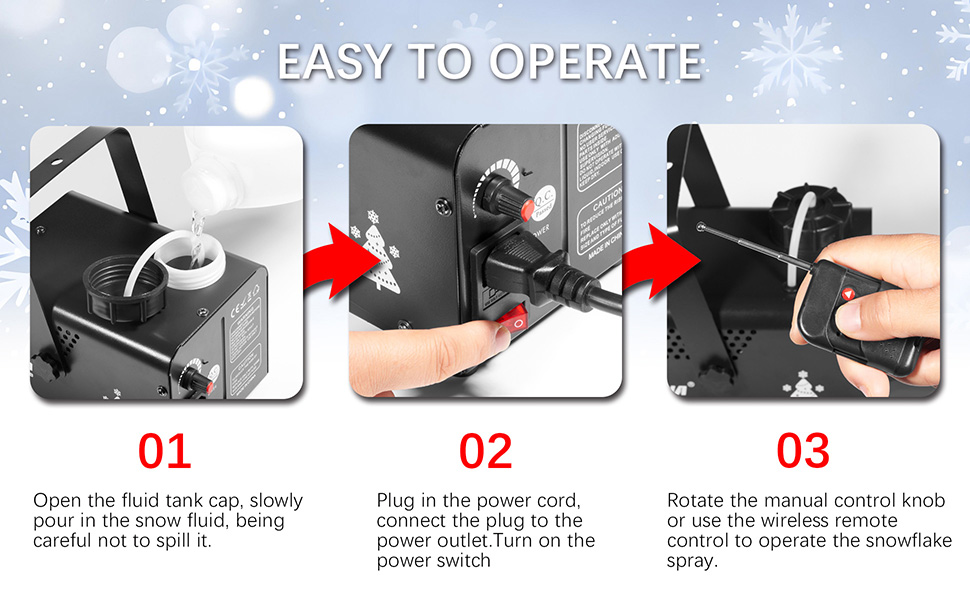 【مخرج ثلج قابل للتعديل】يمكنك ضبط إخراج الثلج عبر المقبض أو جهاز التحكم عن بعد اللاسلكي، مما يسمح بالتحكم الدقيق في التأثير ليناسب سيناريوهات مختلفة.