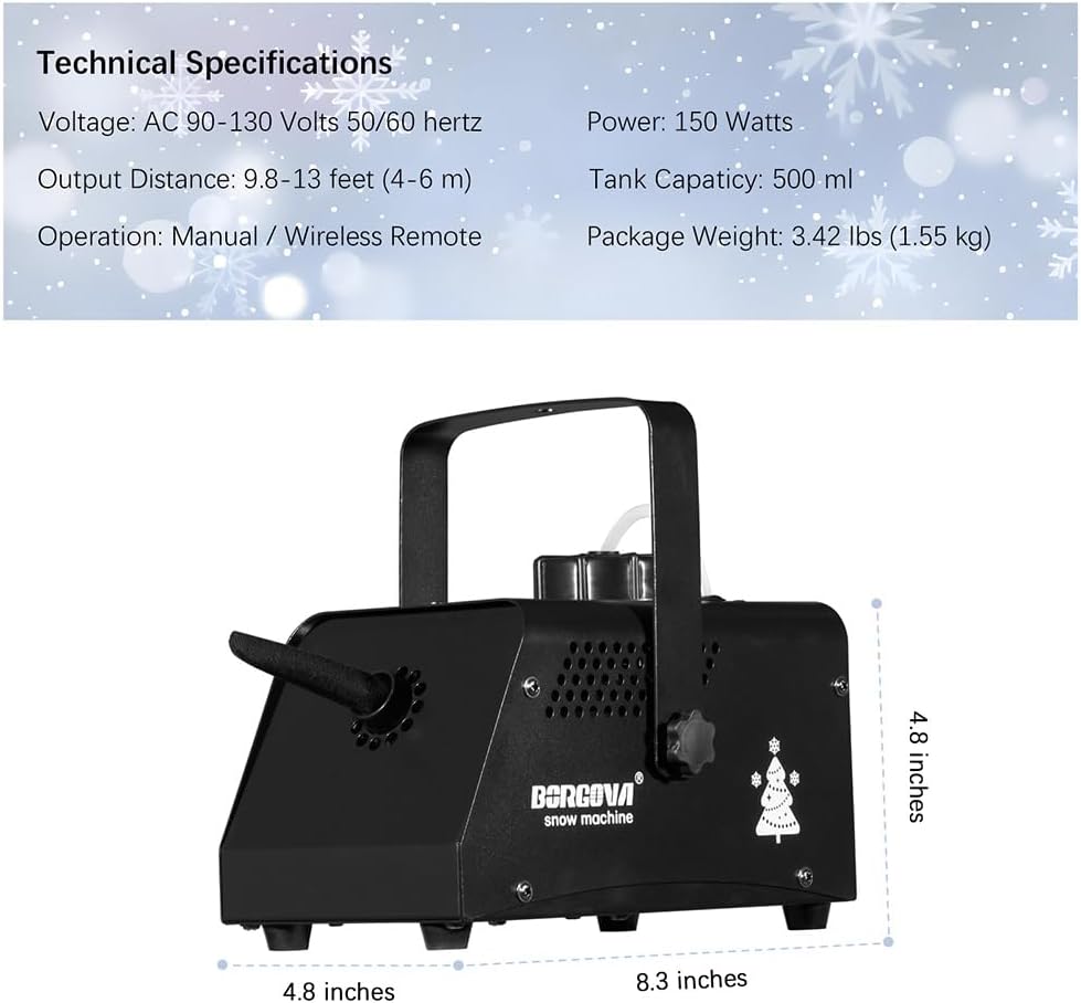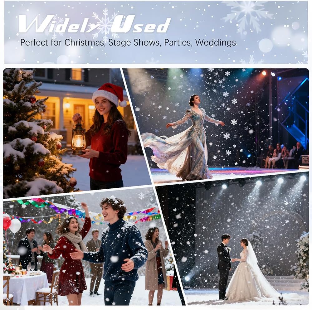 【آلة ندفة الثلج 150 وات】مع قوة 150 وات، ومسافة عرض 9-13 قدم وإخراج 2000 قدم مكعب في الدقيقة، تخلق آلة الثلج هذه ثلجًا كثيفًا واقعيًا في أي وقت وفي أي مكان.