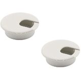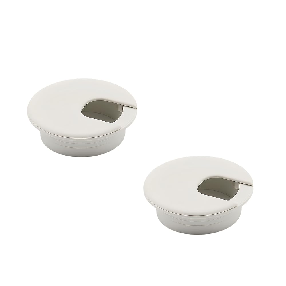 2 قطعة حلقات سلك مكتب 1-1/2 بوصة، غطاء فتحة مكتب من البلاستيك الأبيض سلك كابل جروميت منظم سلك سلك طاولة الكمبيوتر