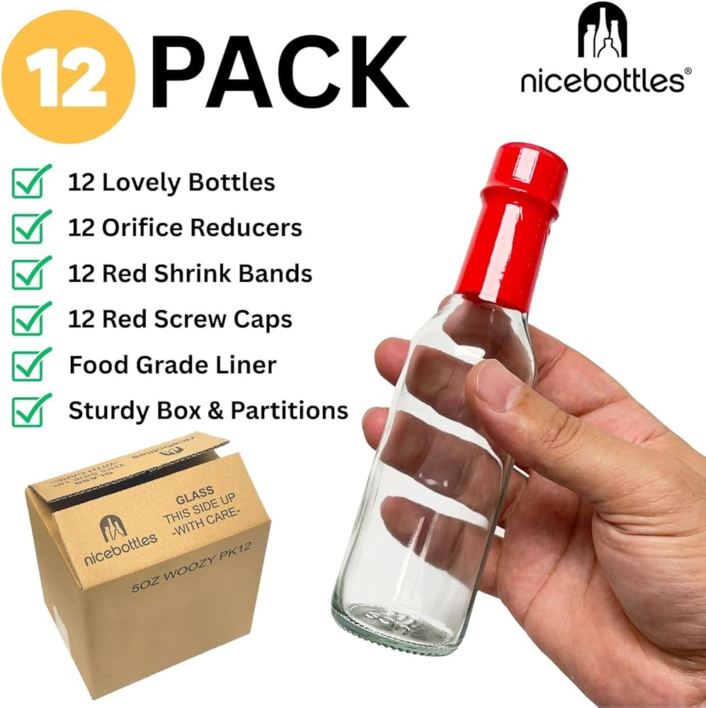 These empty glass hot sauce bottles are the perfect containers for your homemade heat! With a dasher top included, they're great for storing and serving hot sauce. Bottle is made of clear glass and comes with a black screw cap.