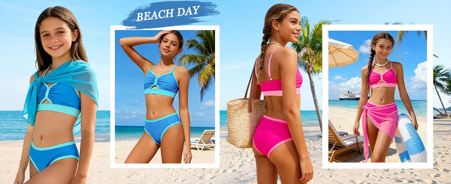 نسيج البيكيني: مصنوع من مزيج ممتاز من 82% بوليستر و18% ألياف لدنة. يعود هذا القماش المتين عالي المرونة بسرعة إلى شكله الأصلي ويقاوم التشوه. يضمن التصميم المسامي سريع الجفاف بقاء فتاتك منتعشة ومرتاحة طوال اليوم، وتؤدي أداءً جيدًا بشكل استثنائي سواء في حمام السباحة أو أثناء الأنشطة الصيفية المختلفة.