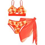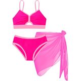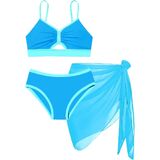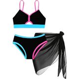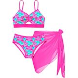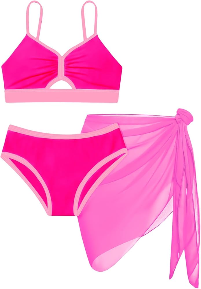 طقم بيكيني للفتيات مكون من 3 قطع: تشتمل كل بدلة سباحة على بيكيني علوي، وسروال سباحة، وسارونج خفيف الوزن. يمكن ربط السارونغ حول الخصر كتنورة أو لفه على الكتفين كشال للحماية من الشمس، ويجمع بين الأناقة والعملية لتسليط الضوء على أسلوب الشاطئ العصري للمرأة. الزي الصيفي المثالي!