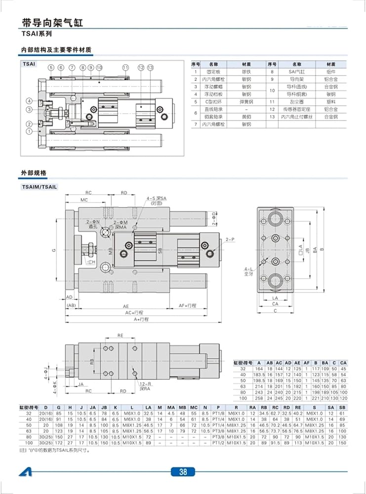 yinjieUS Three-axis Guide Cylinder with Bracket TSAIM32X100S TSAIM50X200S TSAIM50x150S TSAIM (Color : TSAIM32X100S)