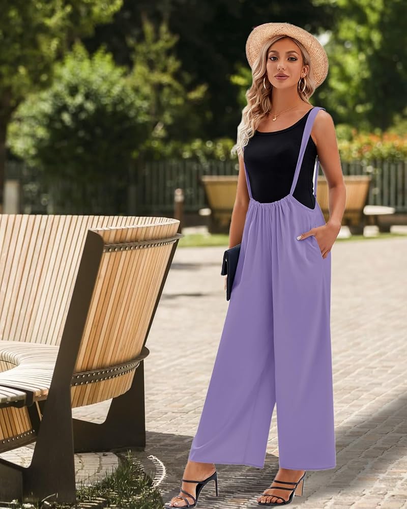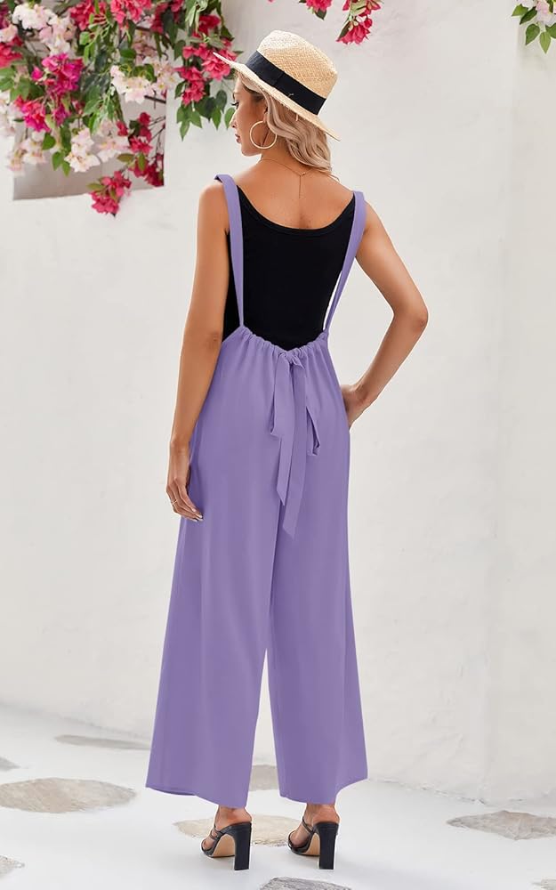 • ♡ التصميم: بذلة بدون أكمام بحزام ربط، فضفاضة، سراويل واسعة الأرجل للنساء كاجوال، بدلة قفز حريرية للنساء، ملابس صيفية فضفاضة مريحة مع جيوب.