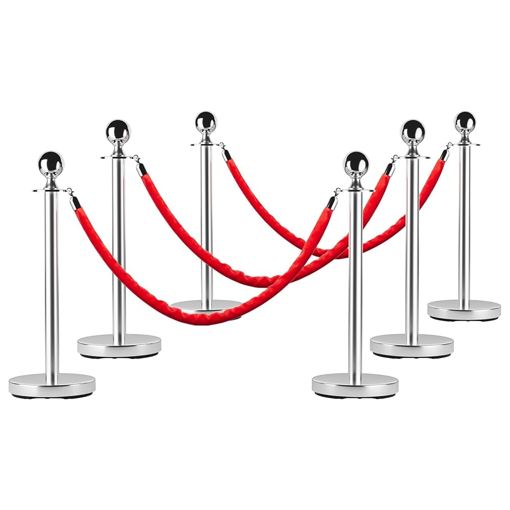 --Luxurious Elegance: Enhance any event with these silver stanchions posts featuring luxurious 5 ft Red Carpet ropes. Perfect for red carpet occasions. parties. or crowd control. they add a polished look while maintaining durability and style