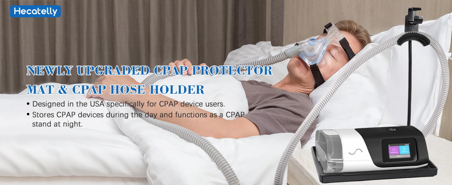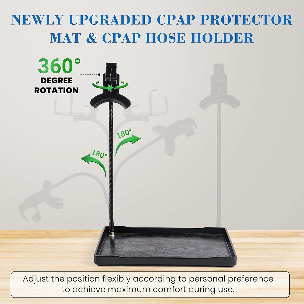 حامل خرطوم CPAP قابل للتعديل مع حصيرة واقية، إدارة أنبوب CPAP مصمم بالولايات المتحدة الأمريكية ومنظم لأغطية الرأس، حامل CPAP بجانب السرير غير قابل للتلف للخرطوم والقناع، مناسب عالمي لآلات CPAP