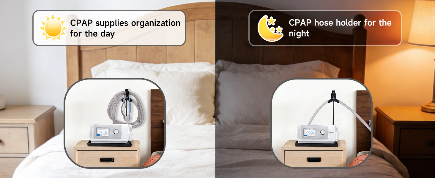 نظام إدارة خرطوم CPAP الكامل: قم بتحويل منضدة cpap الخاصة بك إلى منطقة خالية من الفوضى مع حامل خرطوم CPAP هذا. تم تصميم هذا الحامل القابل للتعديل خصيصًا لمستخدمي جهاز CPAP، وهو بمثابة نظام شامل لإدارة الخرطوم، مما يمنحك مكانًا مخصصًا لخرطوم CPAP والقناع وغطاء الرأس. من خلال الحفاظ على لوازم جهاز CPAP الخاصة بك منظمة بشكل أنيق، فإنه يمنع التشابك ويضمن أن تكون معداتك في متناول اليد دائمًا، مما يعزز بشكل كبير تجربة CPAP الشاملة.