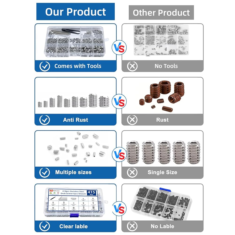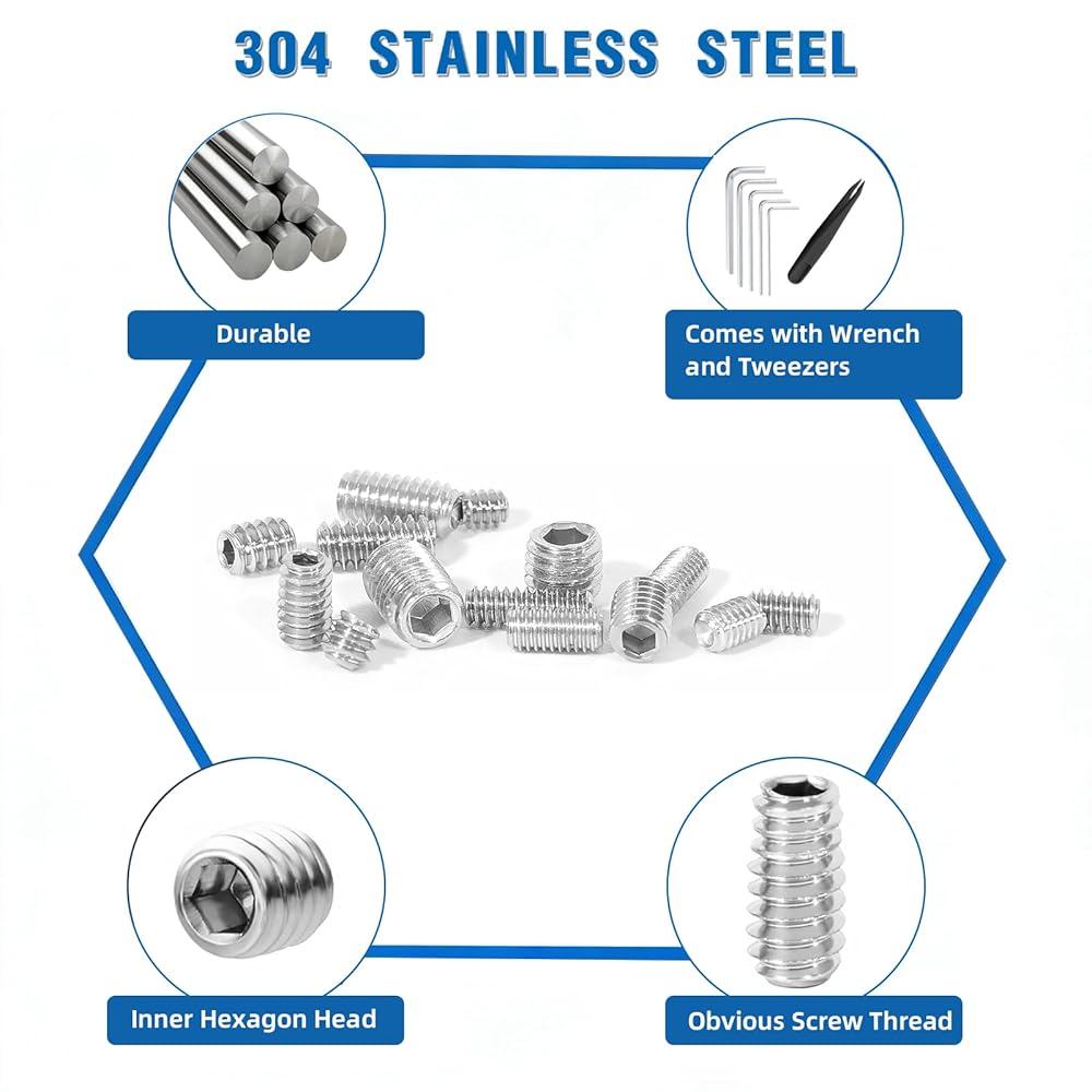 [High Qality] Crafted from high-quality 304 stainless steel, these set screws offer exceptional strength, corrosion resistance, and durability. The smooth, precision-cut threads ensure secure fastening without stripping