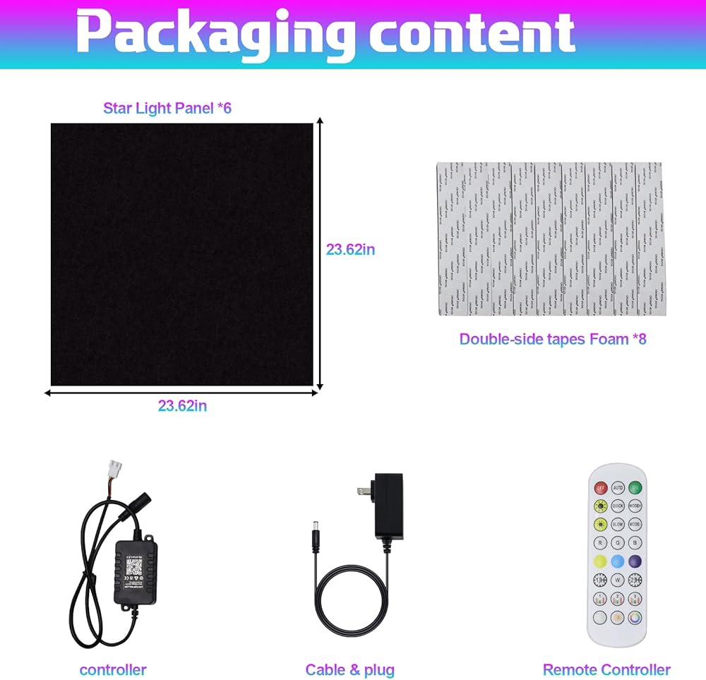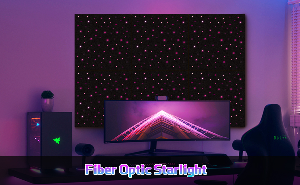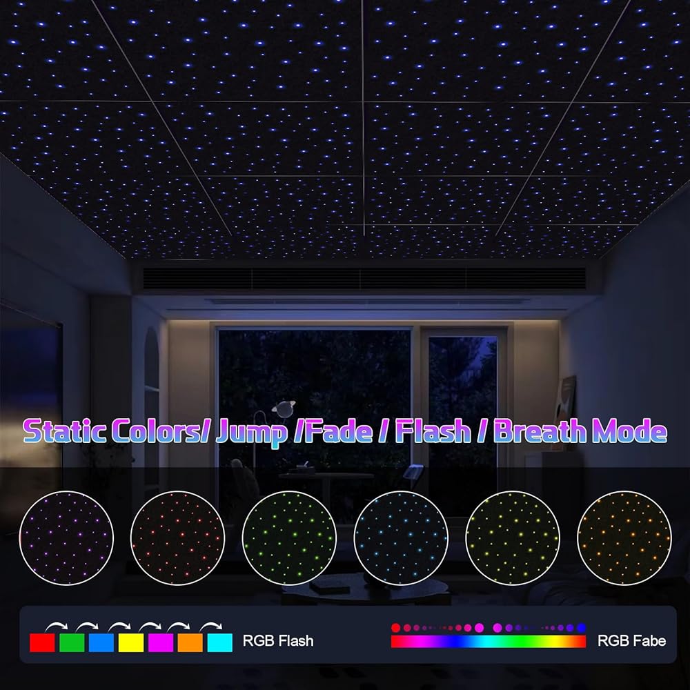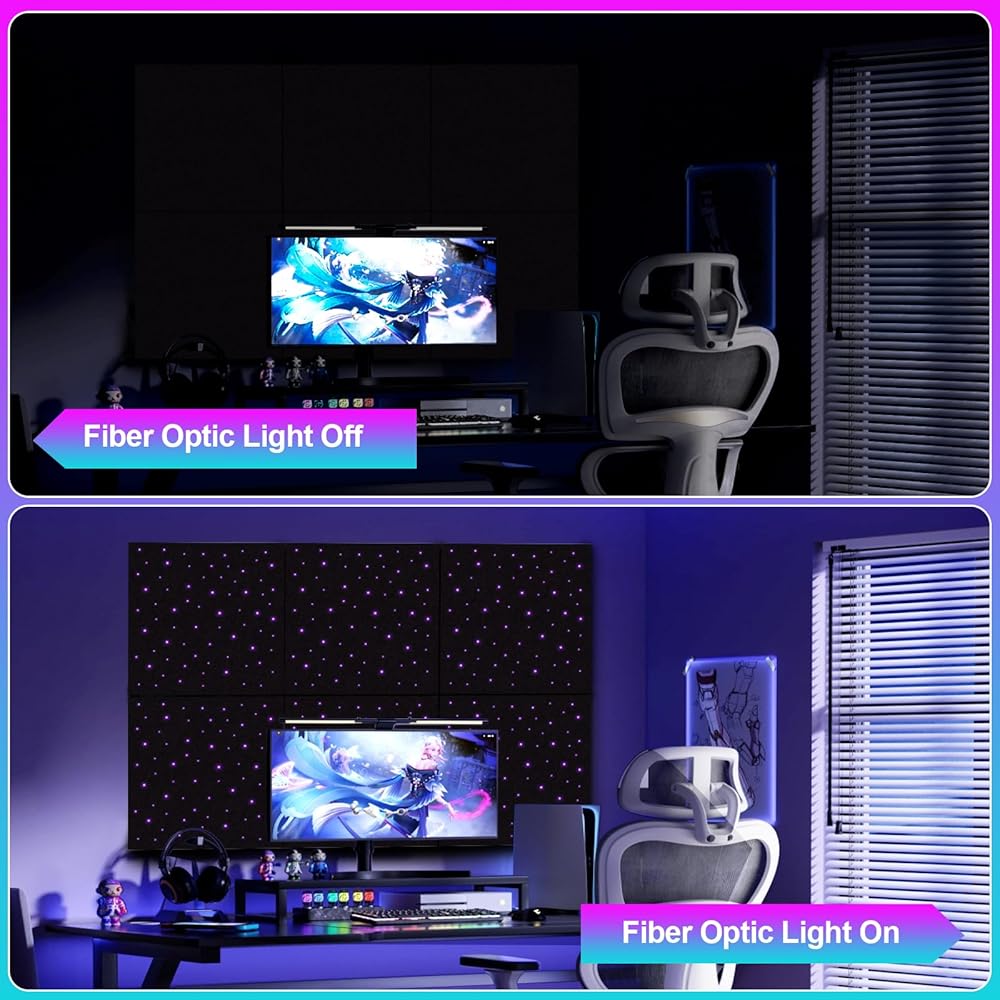 【سحر مزدوج: تألق صوتي + جمالي】لوحة فقط تجمع بين عازل الصوت وتأثيرات ضوء النجوم الساحرة! تخلق الألياف الضوئية عالية الكفاءة توهجًا يشبه المجرة. قم بتحويل الجدران/الأسقف اللطيفة إلى تحفة بصرية مع حجب الضوضاء.