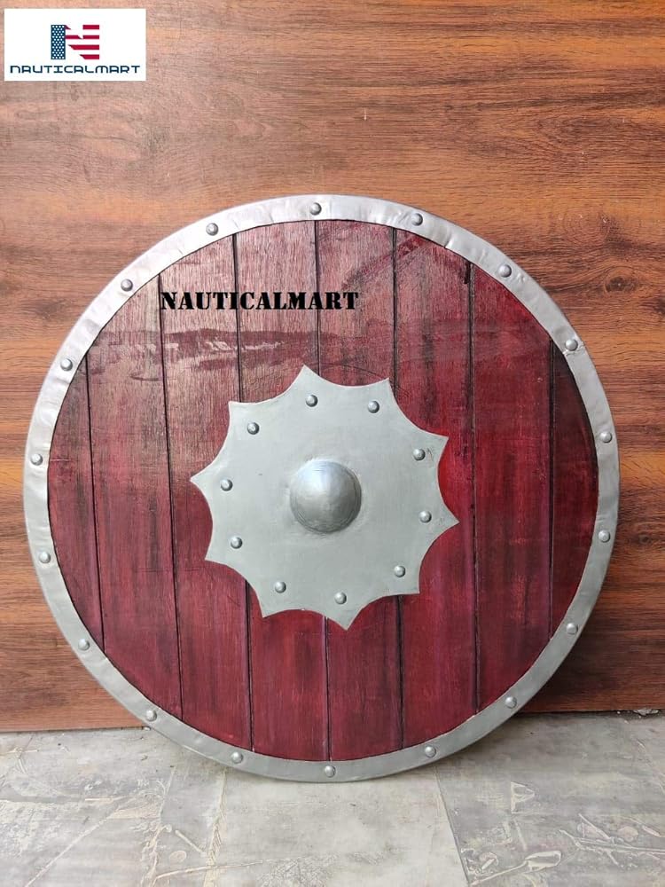 ✔️Medieval Viking Red Wood and Steel Replica Shield LARP Costume Piece